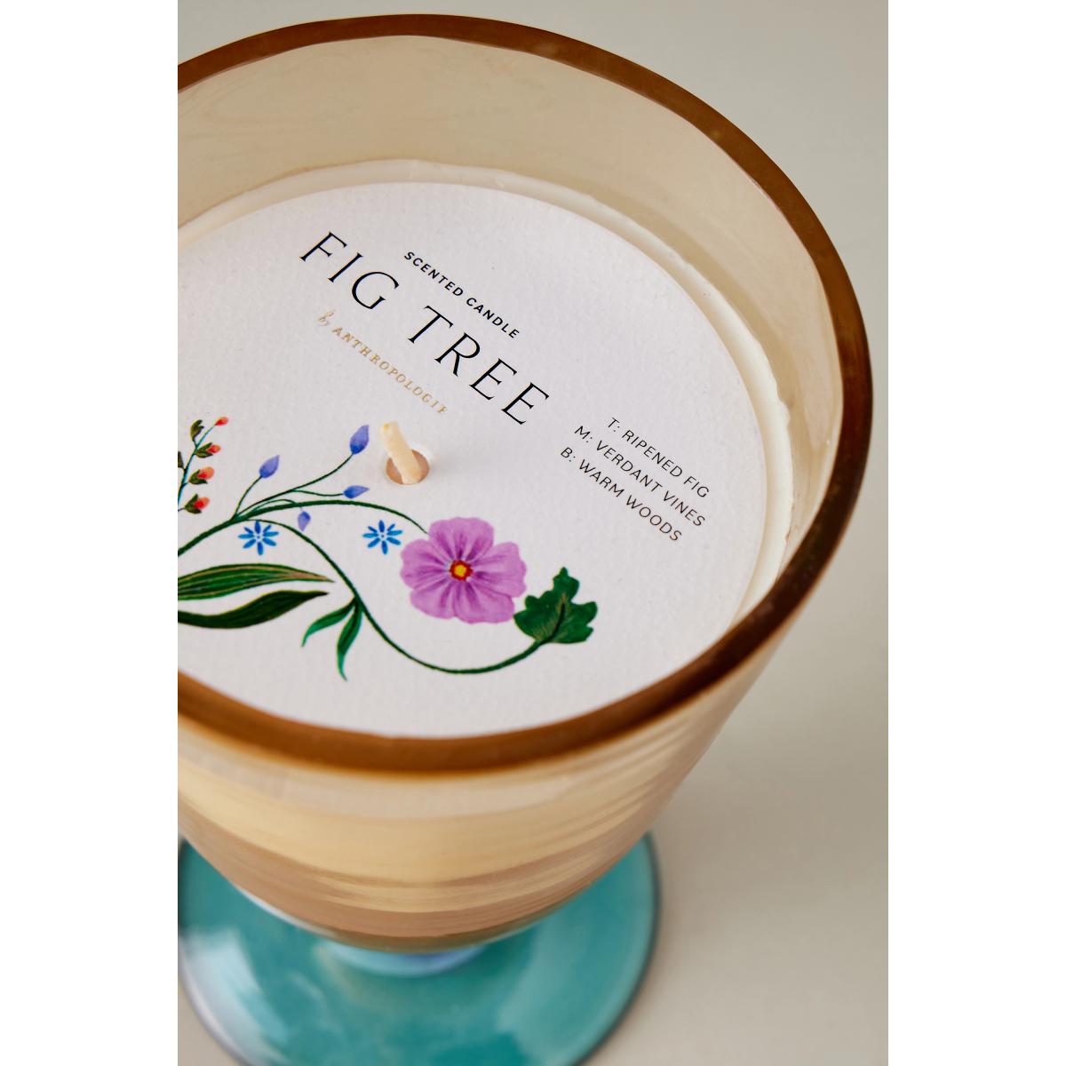 **Fig Tree (Fresh Green)* *: The sophisticated essence of dark fig nectar, peppered cassis, and aromatic blooms nestled with verdant vines, hints of warm woods. *For the best burn experience, keep the following in mind:* * The first time you light your candle, allow it to burn until the wax pool melts all the way to the edge; for a larger candle, this may take several hours. Wax has "memory," so if it is extinguished with a partial pool, that will prevent a full, even pool from forming in the future. * Trim your wick each time you light the candle, removing any "bloom" from the previous burn. We recommend lighting a wick that is 1/4-1/2" in length. * Ensure that your candle is placed on a heat-safe surface. * Do not allow wick trimmings, dust, or other materials to accumulate in the wax pool. * To ensure safety and longevity, be sure to check the bottom of your candle for additional instructions, including details on when to discontinue use. * Exclusively for Anthropologie * 61-hour burn time * Sasol wax blend; fil-tec candle wick * Glass vessel * Imported