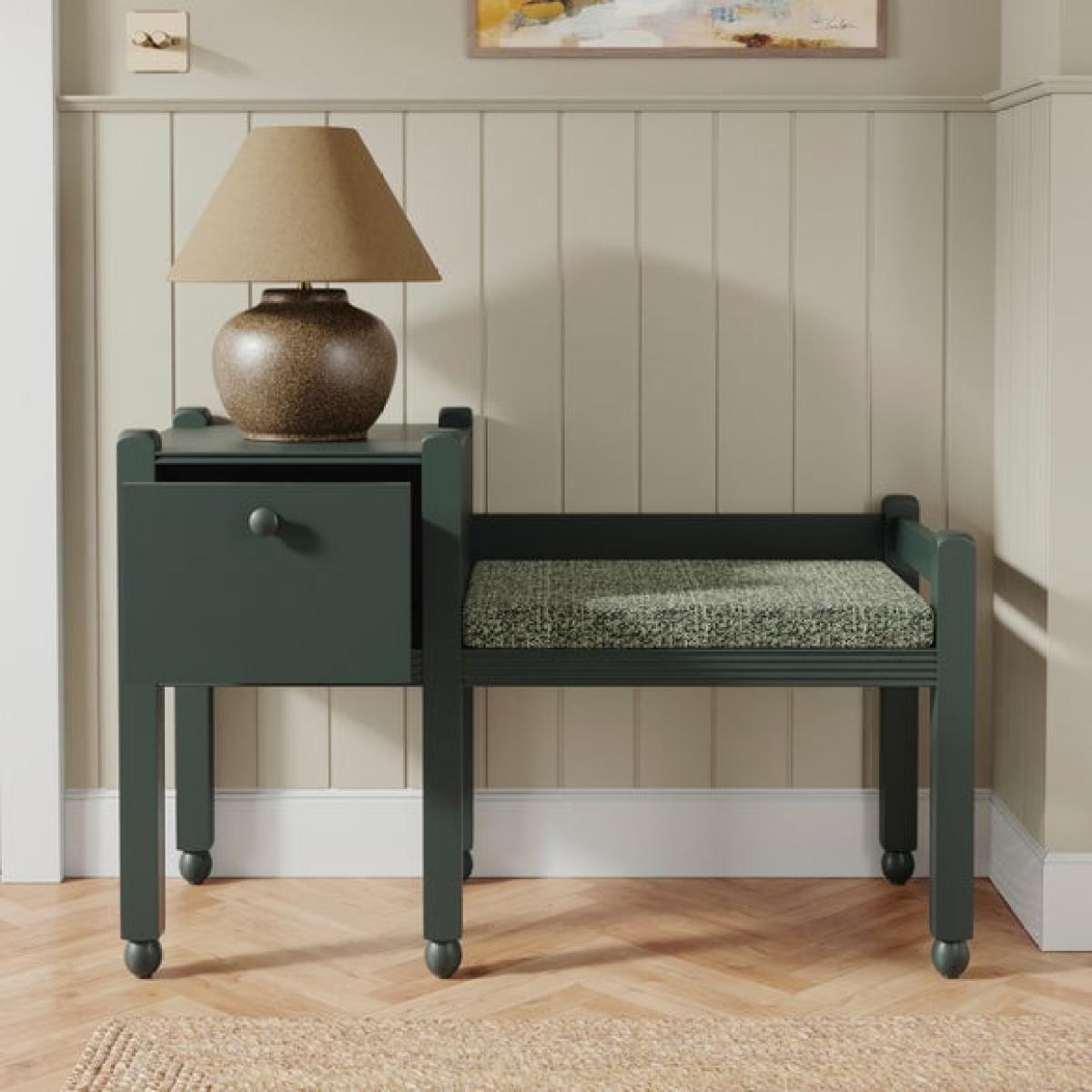 I love this bench for its versatile style and practical functionality. Its simple, classic design makes it suitable for a variety of interiors, from traditional hallway schemes to more contemporary spaces. It's perfect for adding extra seating or serving as a handy spot to quickly organise shoes or bags. To style it effectively, consider placing a cosy cushion or a textured throw on the seat for added comfort, and pairing it with a small basket underneath for shoe storage. It works well in both small and spacious hallways, and can even function as a side table in living areas. Its muted colour and clean lines make it a great, unobtrusive piece that enhances the space without overwhelming it.