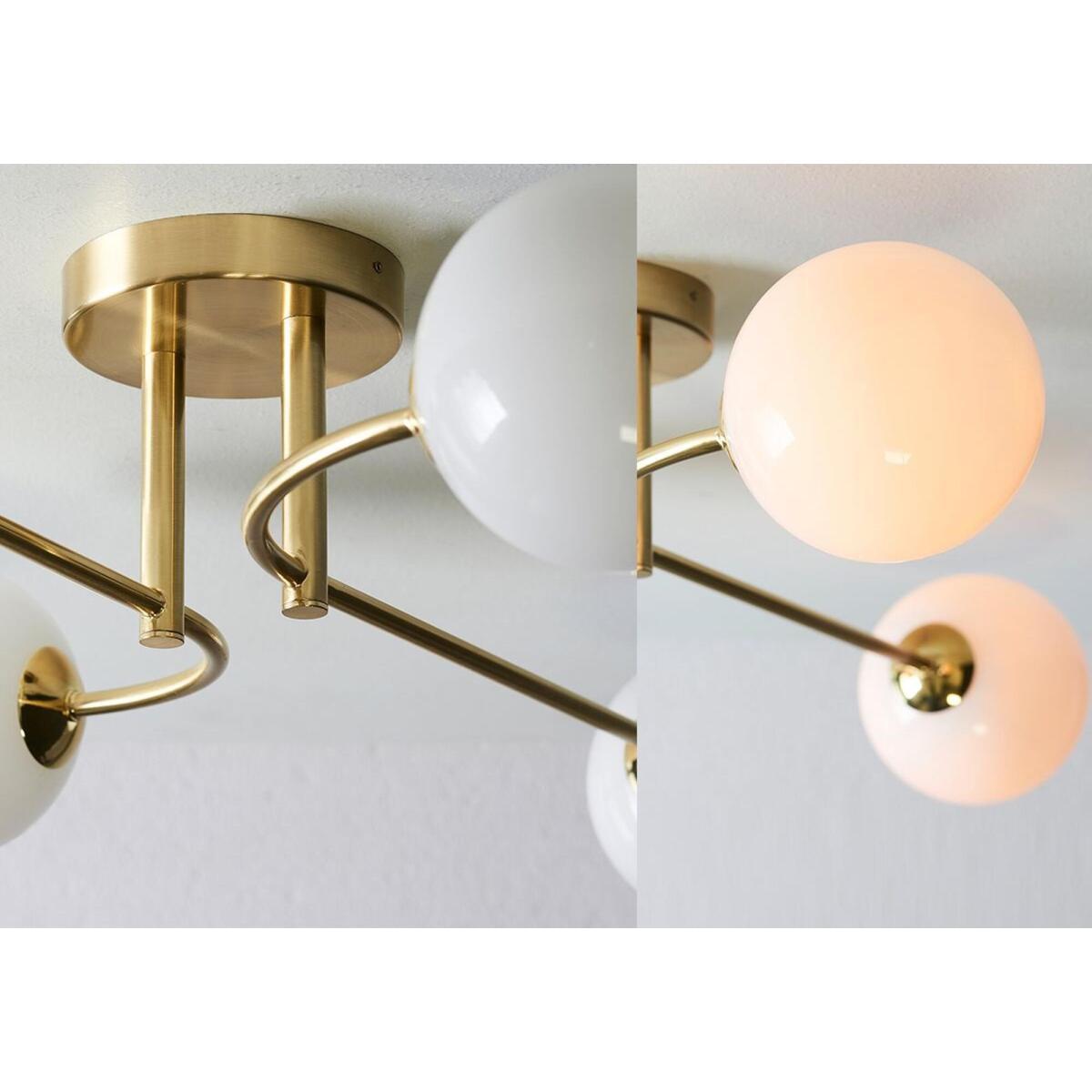 Adorn your interior in a flurry of luxe materials with the Hazel ceiling pendant. This small, retro-inspired fitting has the innate elegance of a chandelier and shines bright with its crisp design, which blends a golden frame with oversized glass ball shades for the perfect mix of luxury and creativity. Team the Hazel, available in different sizes and shapes, with any of our Chloe marble tables for a show stopping duo.