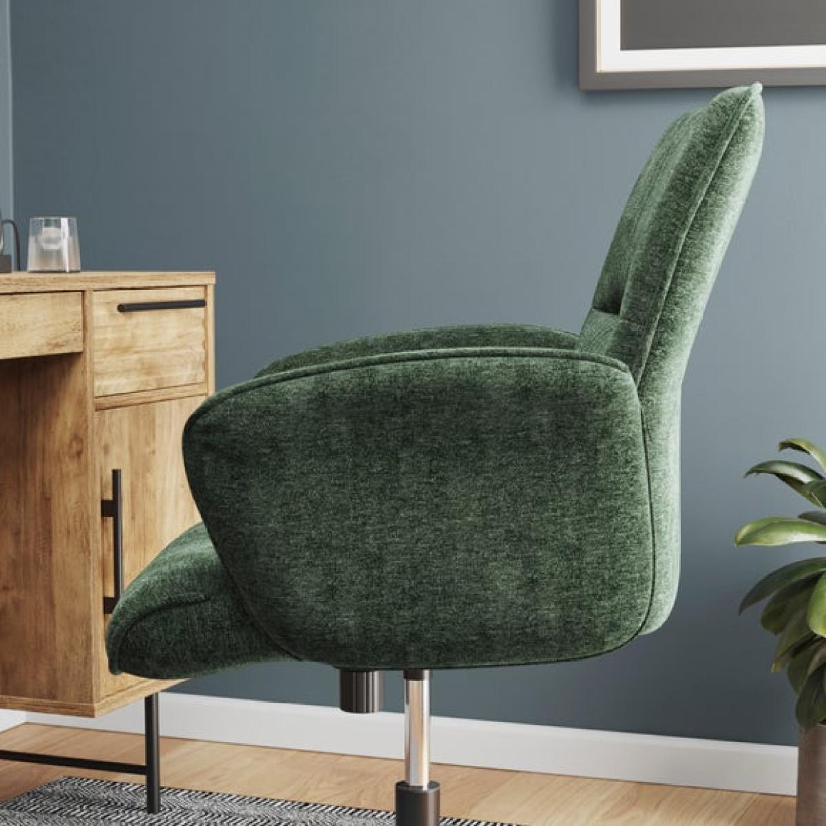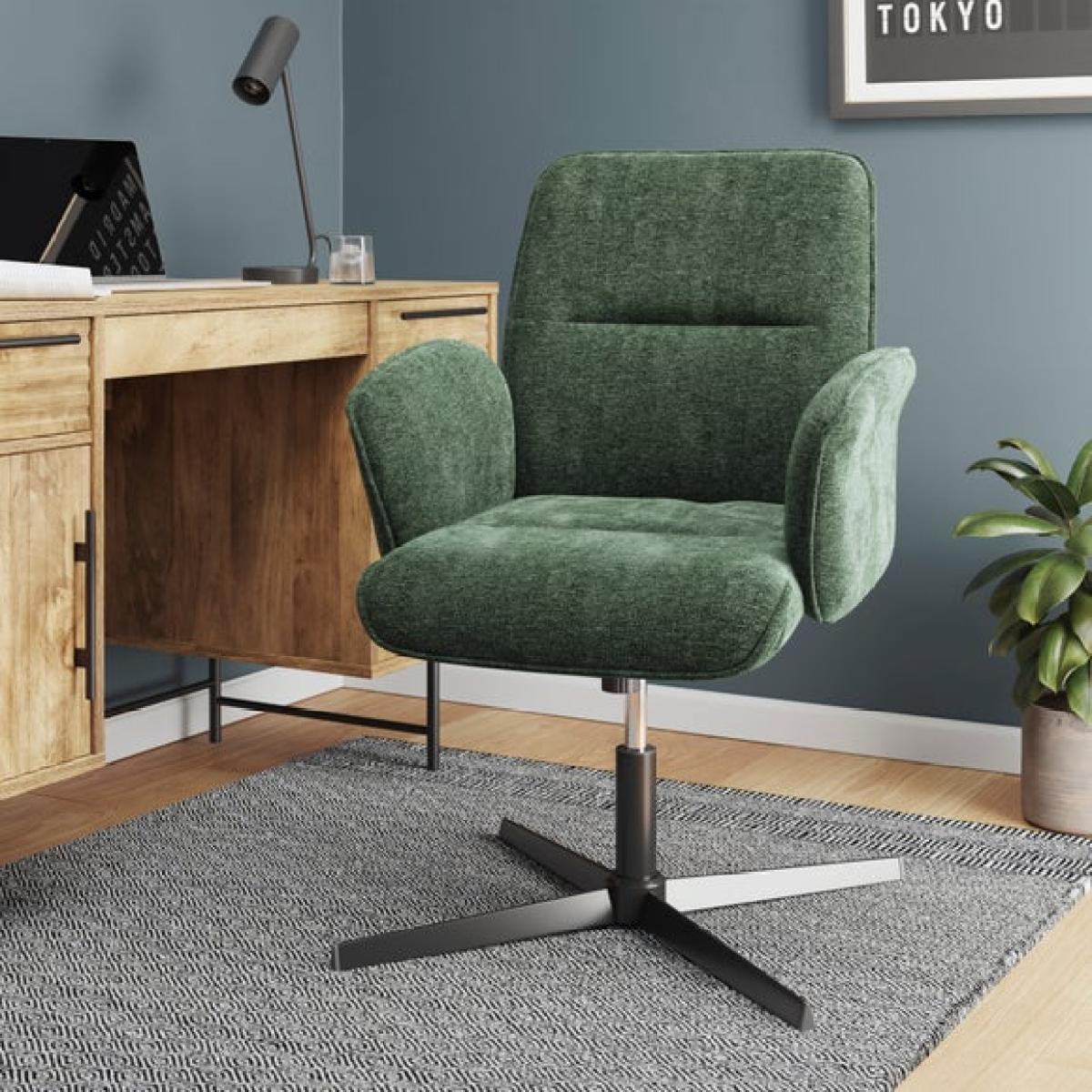 I love the Hazelton Olive Chenille Office Chair for its versatile colour and understated design, making it a great addition to both contemporary and more subtle interiors. Its rich olive hue adds a touch of colour without overwhelming the space, and the chenille fabric provides a soft, textured finish that softens the typically utilitarian feel of an office chair. It works particularly well in homes with muted or earthy tones, creating a calm and inviting workspace. Practical styling tips include pairing it with a sleek desk and minimal accessories for a modern look, or adding a patterned cushion or throw to inject personality and comfort. Additionally, its adjustable height and swivel function make it a practical choice for everyday use.