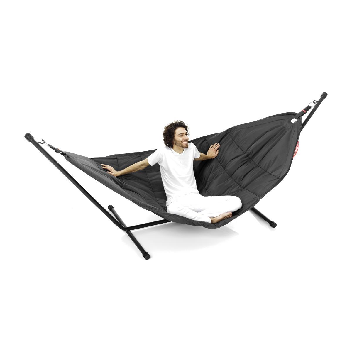 The creators of the original fatboy introduce a new lounge product: the fatboy headdemock. The ultimate spot to relax for in or outdoors. The oversized dimensions, a typical feature of the fatboy look, will give any garden, verandah, living room, or office extra cachet. Measuring 330 x 120 cm, it has plenty of room for one, two, or even three people. The fatboy headdemock is made from practical and easy to clean material with a special water and stain-resistant coating. The internal frame around the fabric offers extra stability for the amply filled mattress. This creates a comfortable place to lie down and relax that you can easily get in and out of. The fatboy headdemock is available in 8 colours: black, red, orange, sand, taupe, lime green, turquoise, and white. The hammock is packed in a practical bag with handles so it is easy to take with you. The hammock is available both with or without the stand.