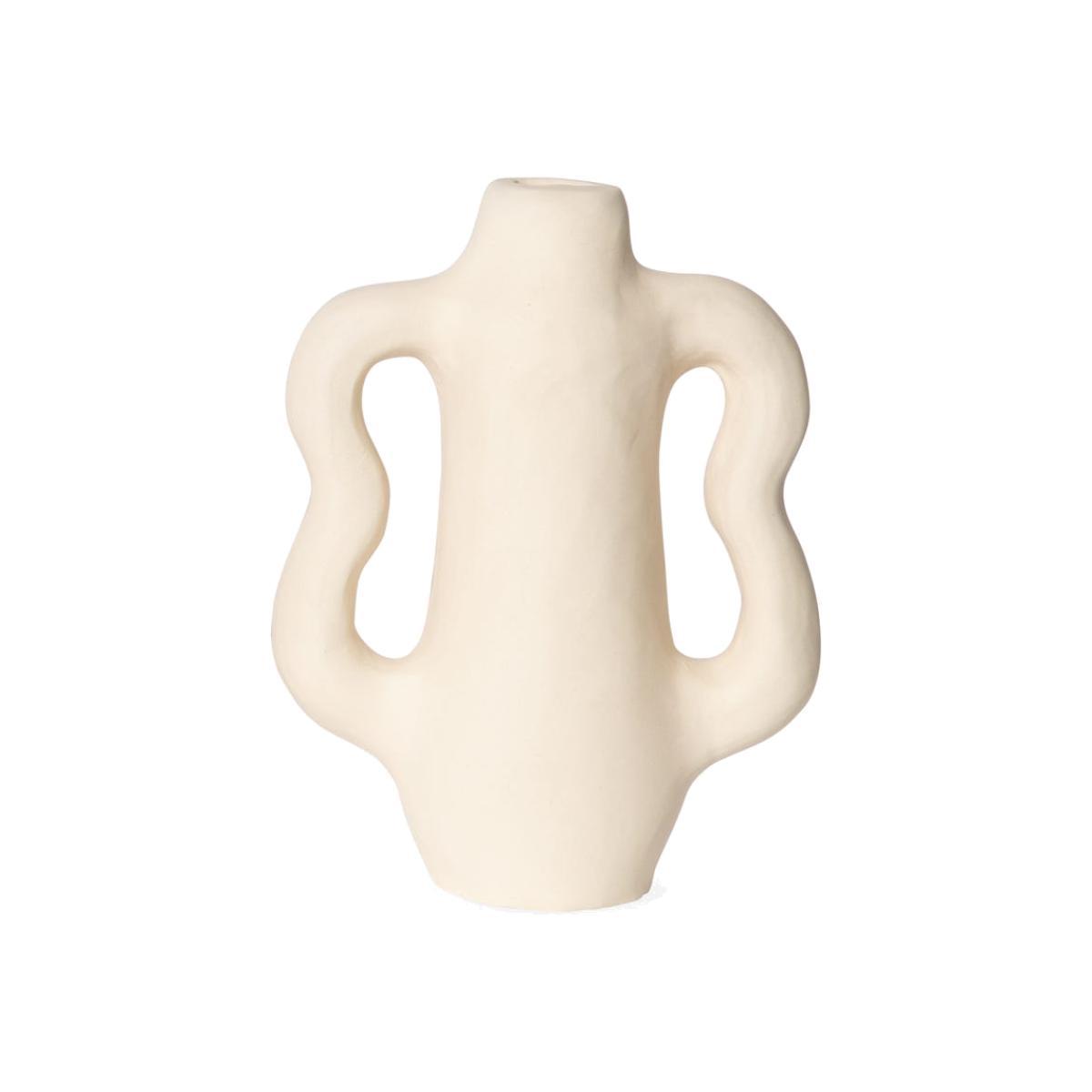 This Alesi vase carved by Annabel Cucuz is a herald of the rich ceramic history of her hometown. Growing up in Staffordshire, the heart of Britain’s pottery industry, it was a natural choice for her to use clay as the medium of her artistic sculptures. Entirely handmade, this Alesi vase uses organic shapes through simple, curved design and two handles. Brought to life in a gentle magnolia colour, this vase is an exquisite piece for any modern home.