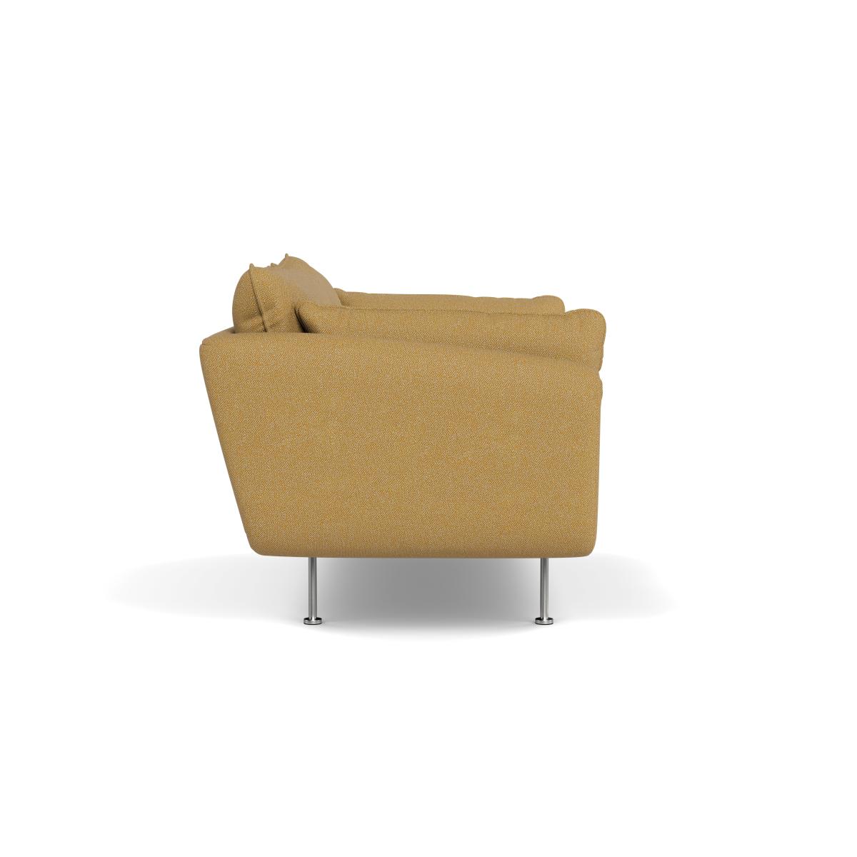The Allora 2 Seater is a versatile choice that works well in both modern and eclectic interiors. I love how its boucle tweed fabric adds a tactile, cosy element, making it an inviting focal point. The citrine colour is cheerful without overwhelming, pairing nicely with neutral tones or contrasting with deeper, richer shades for a layered look. Practical styling tips include adding textured or patterned cushions to complement the boucle’s softness and placing it alongside warm wood or brass accents to emphasise its brass feet. It’s ideal for smaller living spaces, offering comfort and style without overpowering the room.