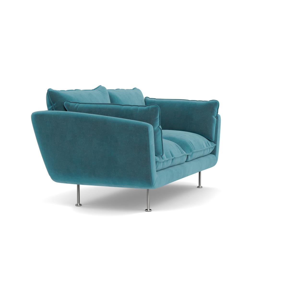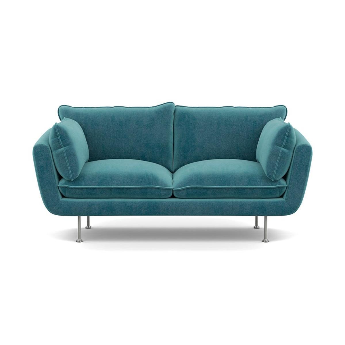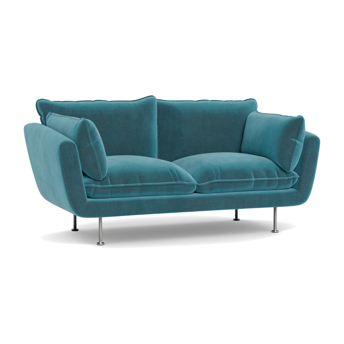 Heal's Allora 2 Seater Sofa Smart Luxe Velvet Airforce Blue Stainless Steel Feet