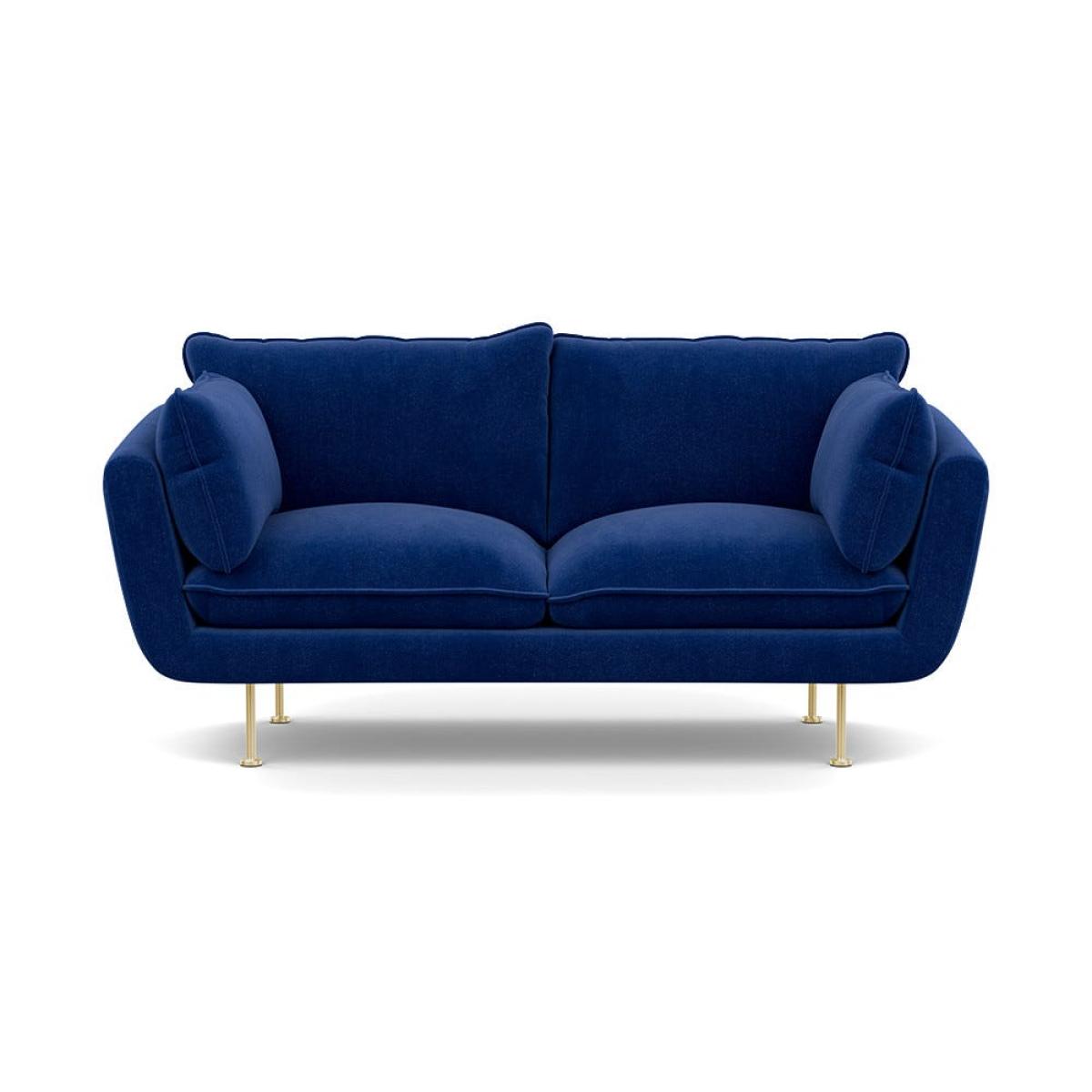 Heal's Allora 2 Seater Sofa Smart Luxe Velvet Azure Brass Feet