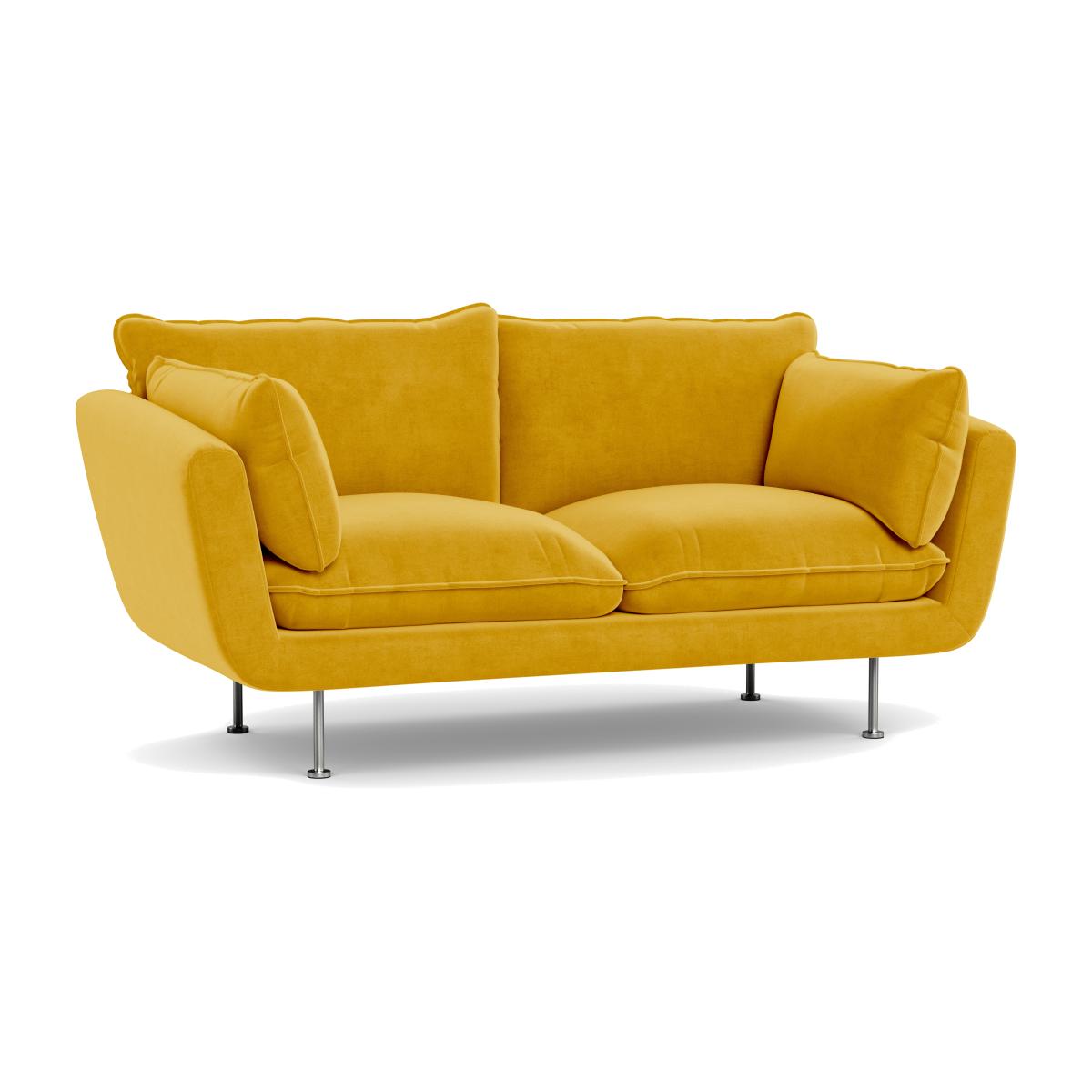 Heal's Allora 2 Seater Sofa Smart Luxe Velvet Canary Stainless Steel Feet