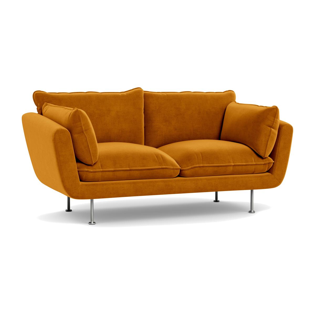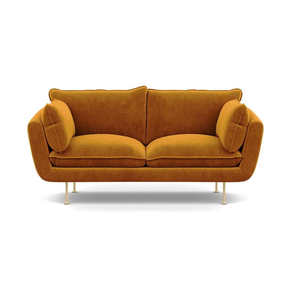 Heal's Allora 2 Seater Sofa Smart Luxe Velvet Cognac Brass Feet