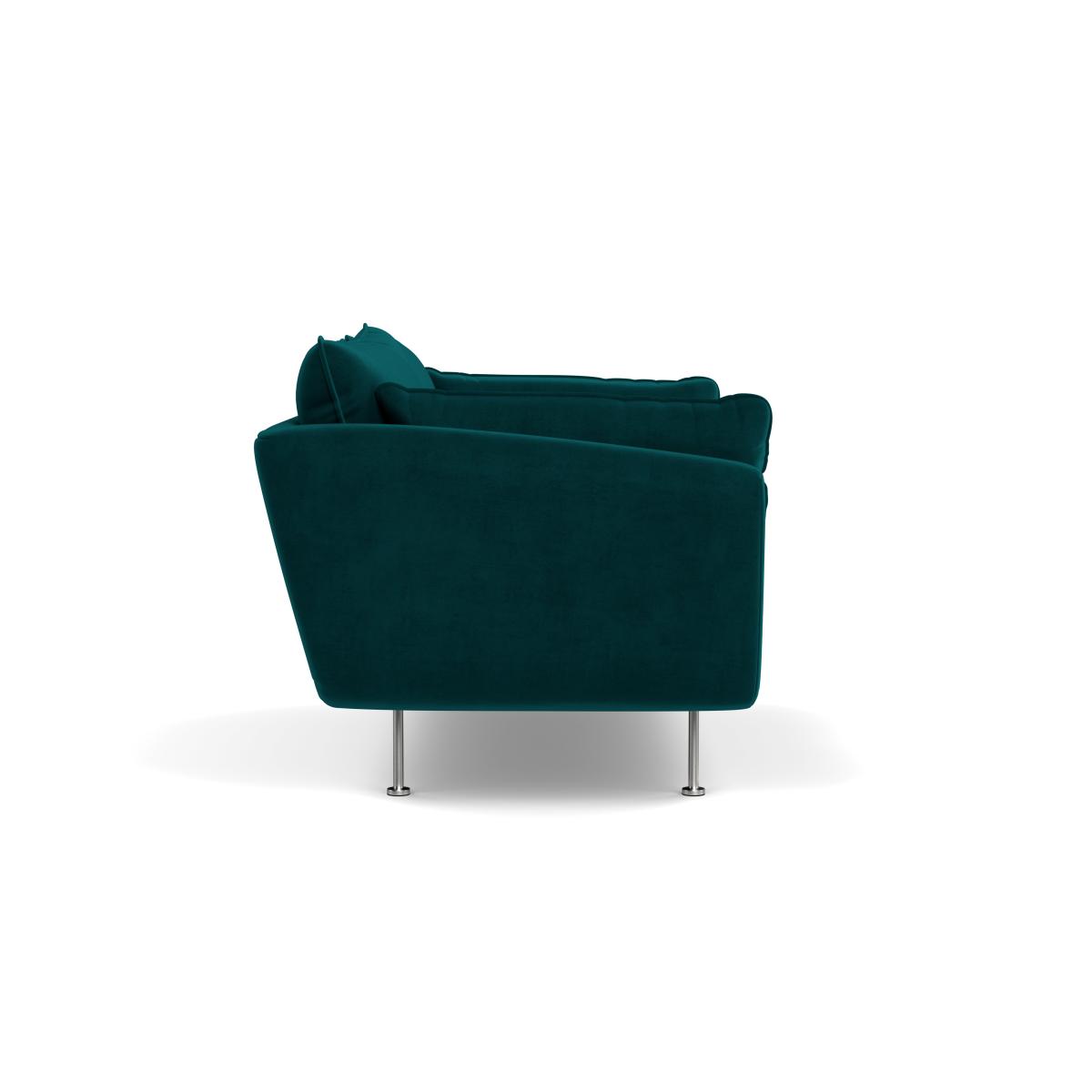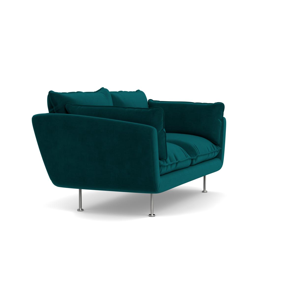I love this sofa for its contemporary yet timeless appeal, especially with the luxe velvet finish which adds a sophisticated texture to any space. The ocean hue combined with black feet makes it versatile enough to work well in both modern and more eclectic interiors. It’s ideal for creating a statement as a standalone piece or layered with patterned cushions and throws for added comfort. In open-plan living areas, it encourages relaxed socialising, while in smaller settings, its compact design maximises space efficiently. Practical styling tips include pairing it with metallic accents or warm woods to elevate its luxe feel, and incorporating soft lighting to highlight the rich fabric and colour.