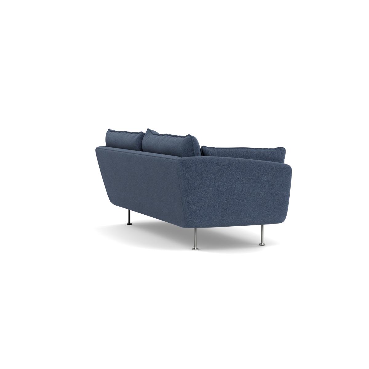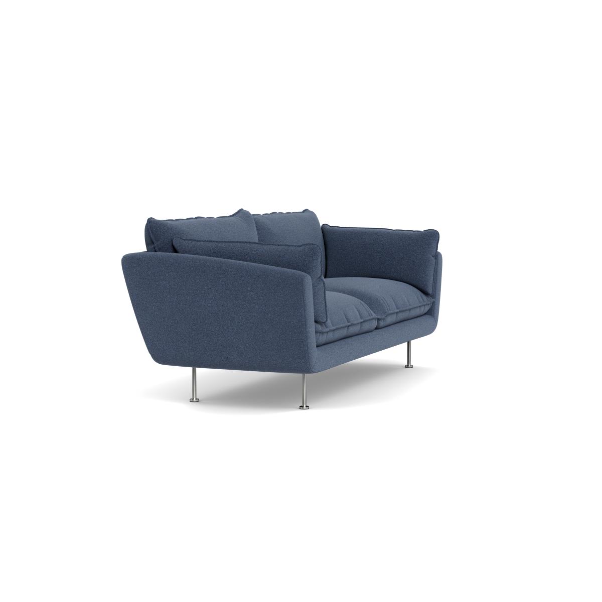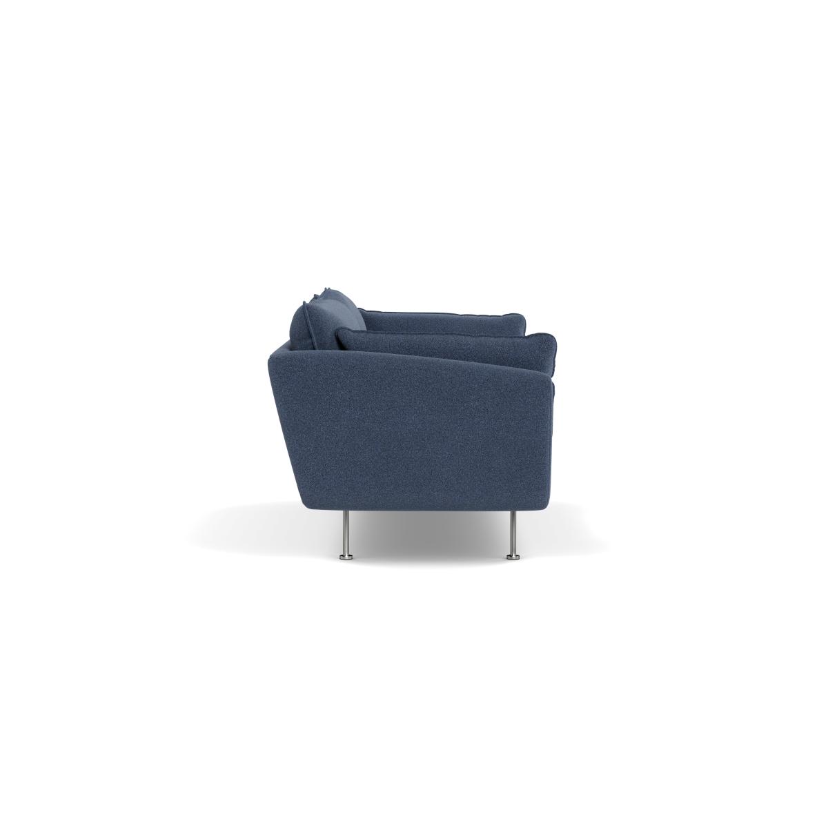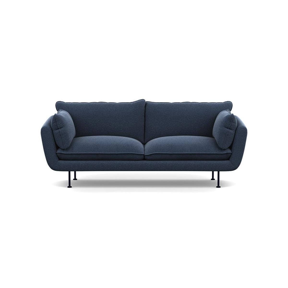 I love this sofa for its versatile, modern appeal paired with a classic touch thanks to the boucle fabric in indigo. It works particularly well in contemporary interiors looking to add a cosy yet sophisticated vibe. Its clean lines and relaxed profile make it adaptable across a variety of colour schemes and styles, from minimalist schemes to layered, more eclectic rooms. When styling around it, consider pairing with textured cushions or throws in contrasting colours or materials, such as linen or velvet, to create visual interest. The black feet give it a grounded, sleek finish that can easily be complemented with darker flooring or contrasted with lighter rug options for a balanced look. This sofa is also a great choice for practical living spaces because of its durable fabric and inviting seating, making it suitable for both everyday use and more relaxed gatherings.