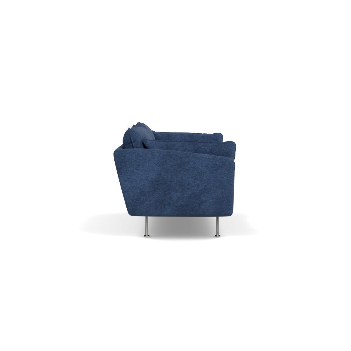 I love this sofa for its versatile shape and rich lagoon blue hue, which adds a pop of colour without overwhelming the space. The broad weave texture brings a subtle tactile element, making it inviting and plush. Its clean lines and brass feet give it a modern yet timeless appeal, perfect for both contemporary and eclectic interiors. Practical styling tips include pairing it with neutral or patterned cushions to soften the look and complementing it with sleek side tables or statement lighting for a balanced scheme. Its design makes it ideal for smaller living rooms or open-plan spaces where it can double as a cosy spot for lounging or even an occasional guest bed when needed.
