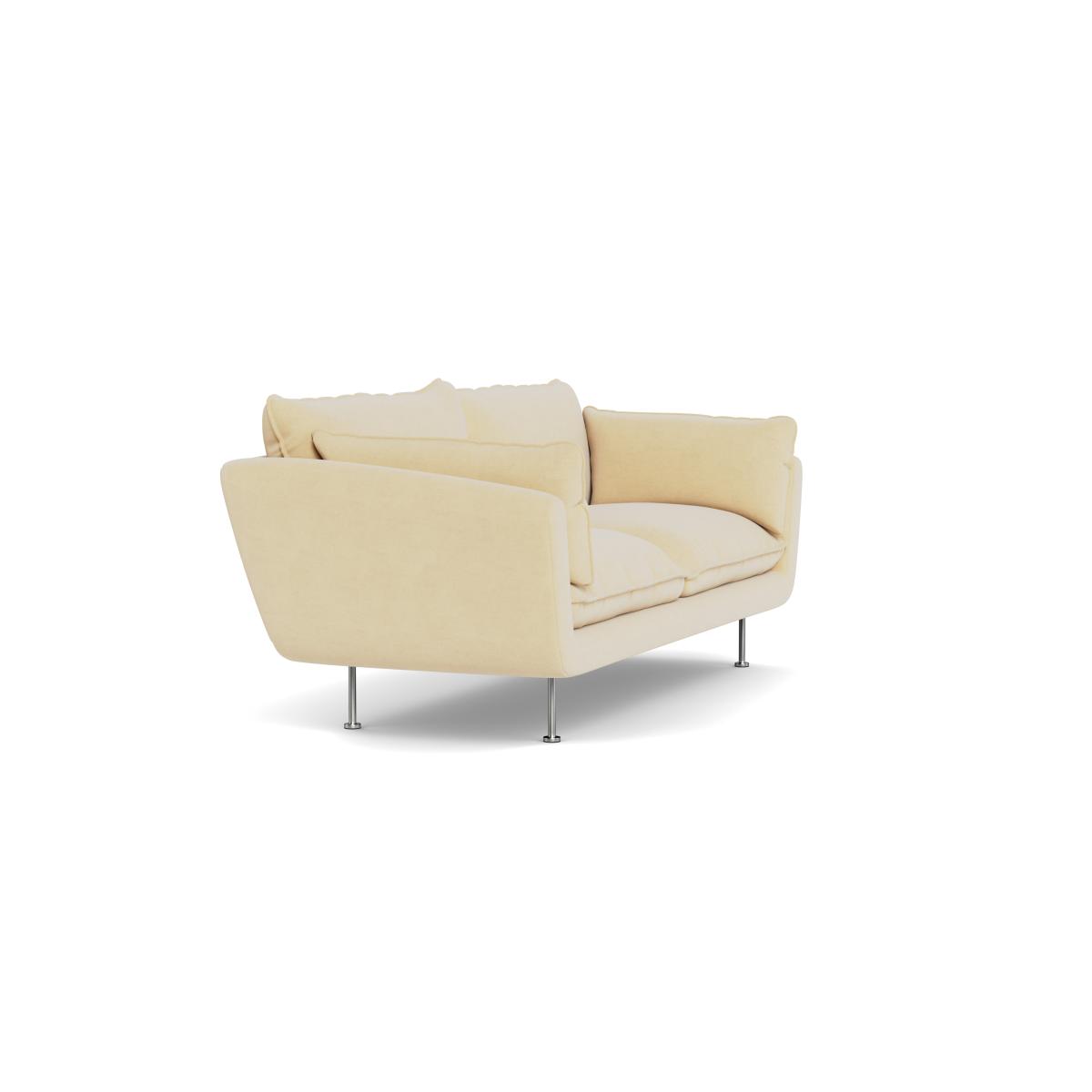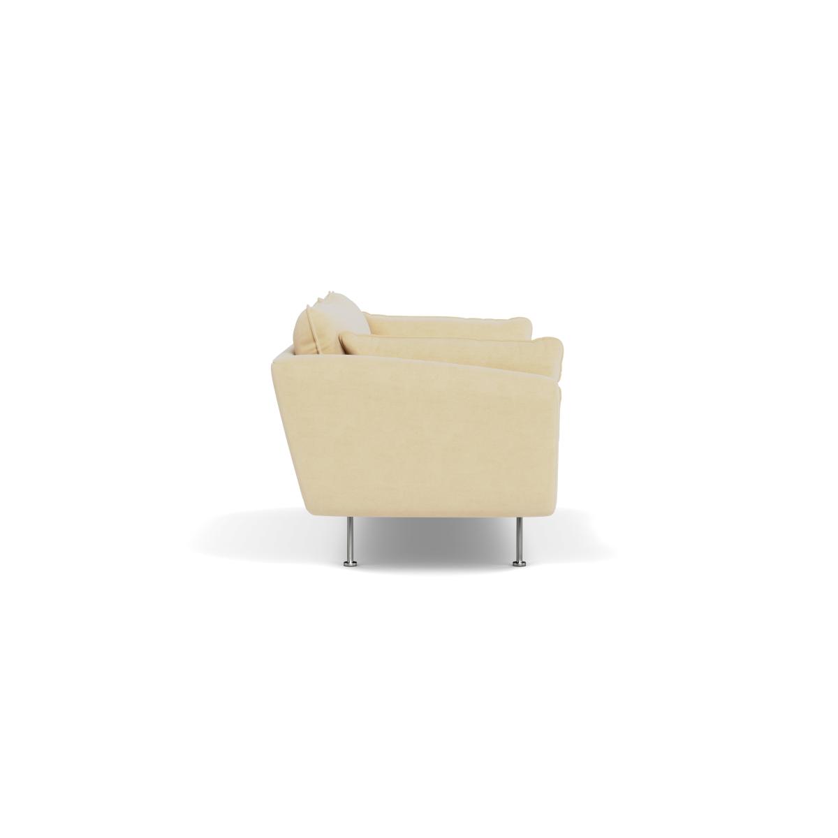 I love this sofa for its clever combination of luxe velvet and modern detailing. The Biscuit colour adds a soft, neutral touch that works well in both contemporary and classic interiors, making it versatile for various colour palettes. Its brass feet elevate the overall look, adding a subtle but impactful touch of sophistication. For styling, I suggest pairing it with textured cushions in complementary tones or metallic accents for added visual interest. This sofa works particularly well in open-plan living spaces or cosy lounges, where its elegant silhouette can be appreciated without overwhelming the room. Practical tips include choosing rugs and curtains in muted or warm hues to create a cohesive, inviting environment that highlights its refined finish.