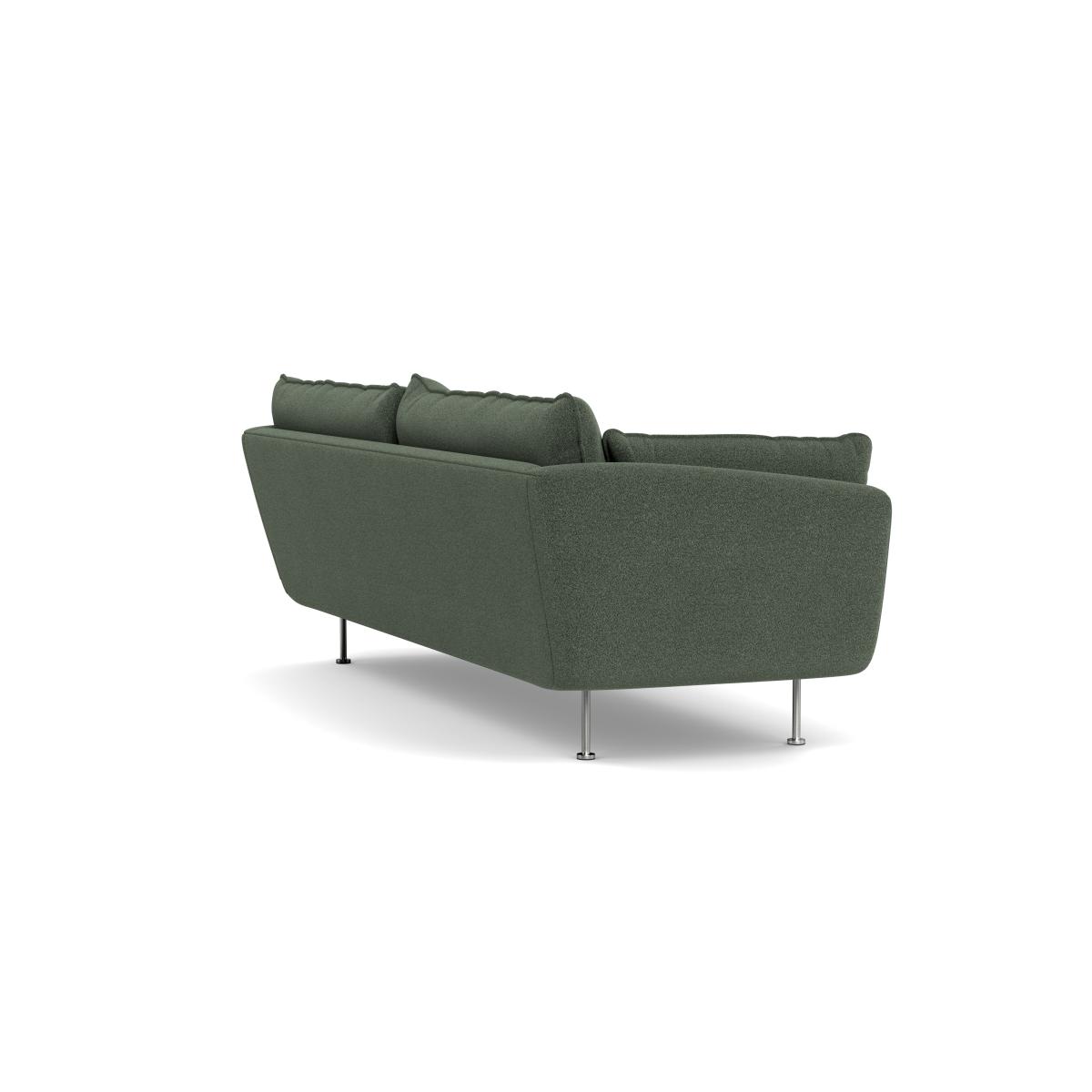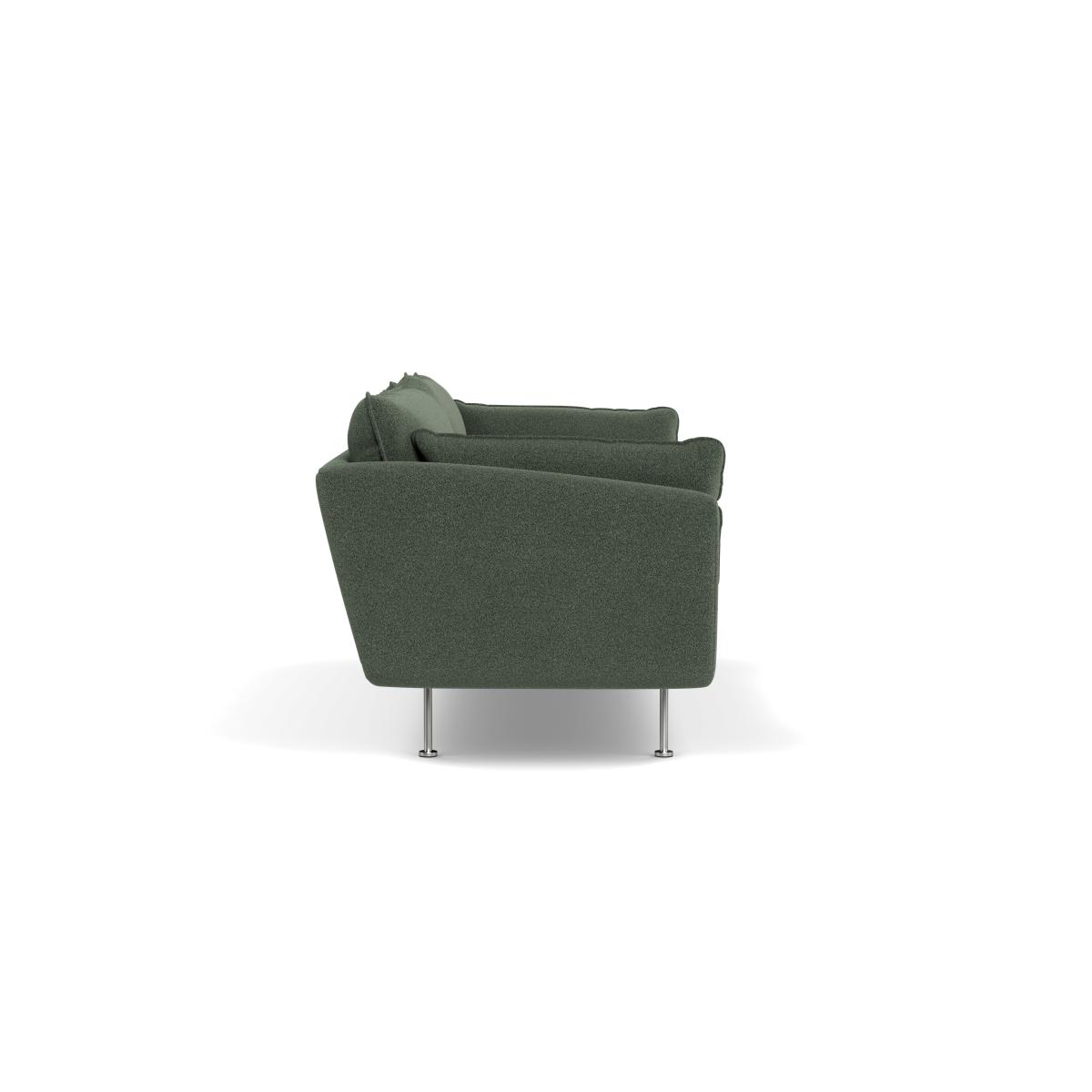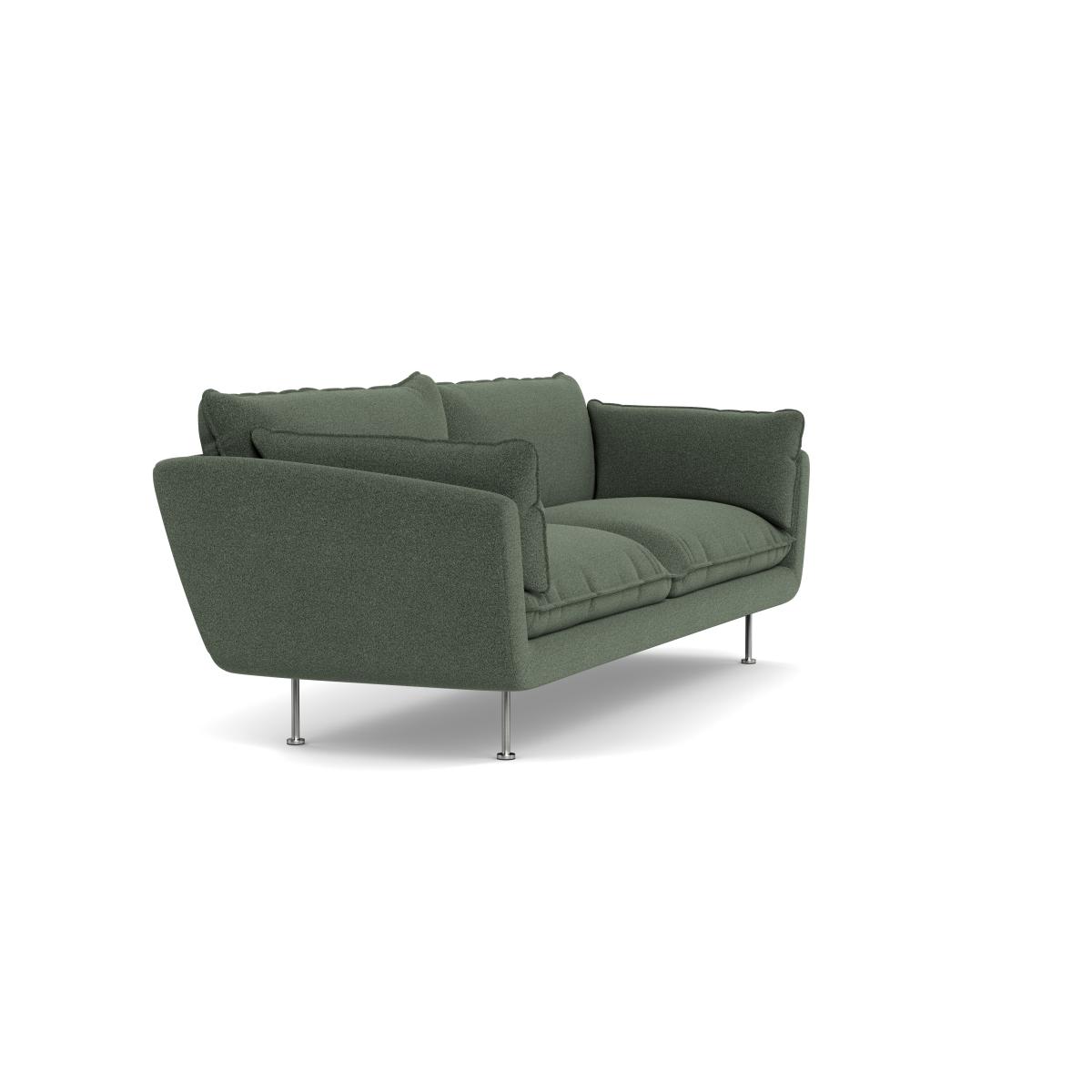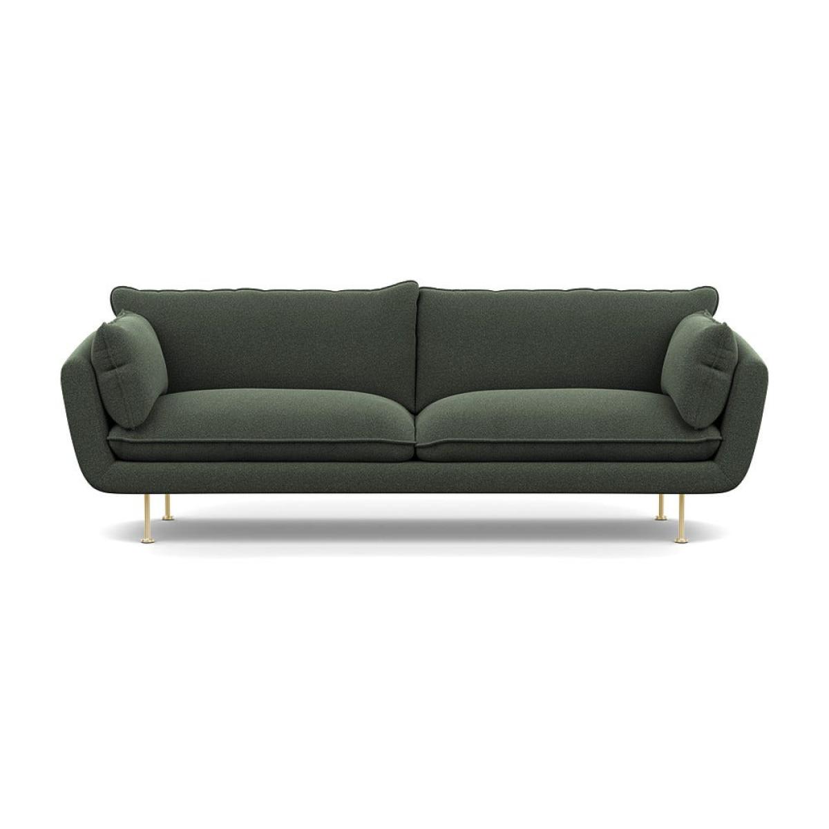 This sofa is a great choice for adding a modern yet timeless touch to your living space. I love its boucle fabric, which offers a soft, textured surface that feels inviting and cosy, ideal for relaxed lounging. The fern green colour pairs beautifully with both neutral palettes and richer, jewel-toned interiors, making it versatile for various decor styles. The brass feet add a sophisticated contemporary edge, elevating the overall look. In terms of styling tips, complement it with layered textiles like throw pillows and textured rugs, or position it against a minimalist backdrop for a clean and elegant vibe. It works particularly well in mid-century modern or Scandinavian-inspired interiors, but can also serve as a statement piece in more eclectic spaces. Keep the setting simple for maximum impact, and you’ll have a stylish, comfortable centerpiece.