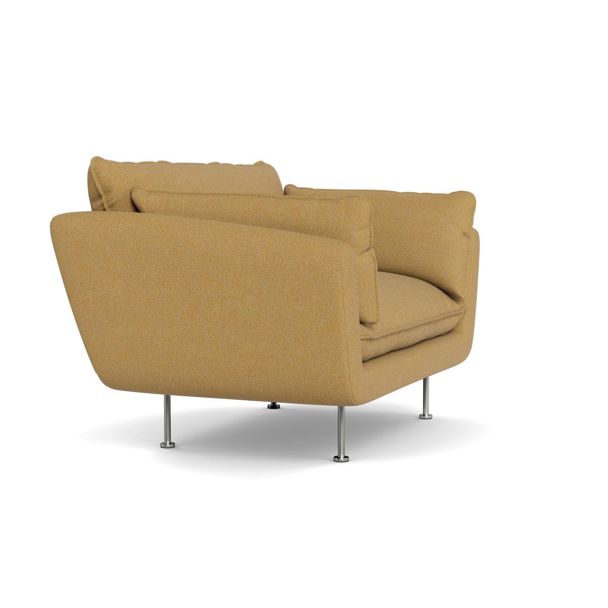 This little loveseat is a real standout piece, thanks to its boucle tweed fabric in citrine, which adds a warm yet contemporary touch to any space. I love how the stainless steel feet give it a sleek, modern edge while keeping the overall look light and airy. It works particularly well in eclectic, Scandinavian, or modern interiors where it can serve as a statement piece without overpowering the room. For styling, consider pairing it with textured cushions or a throw in contrasting colours or patterns to create visual interest. Its versatile size also makes it ideal for smaller living spaces or adult girls’ rooms, offering comfort and style without taking up too much room.