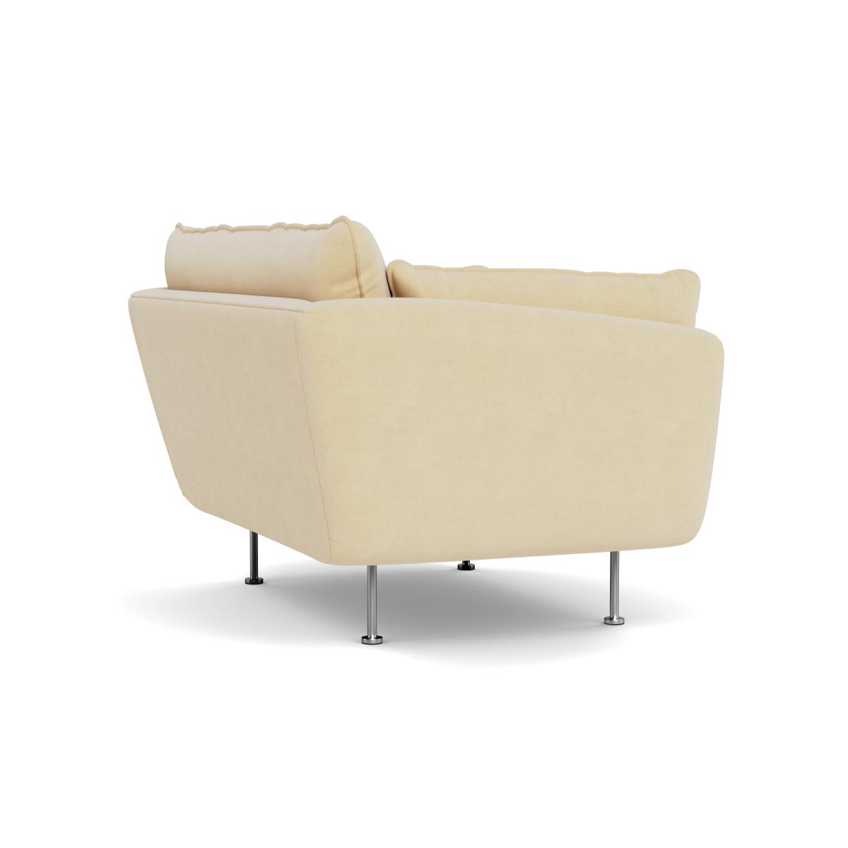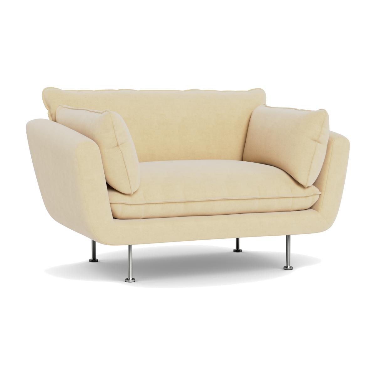 I love this loveseat’s smart luxe velvet in biscuit, which offers a soft, inviting texture that adds sophistication to any space. Its contemporary silhouette, paired with brass feet, makes it a versatile piece that works well in modern and eclectic interiors alike. It's ideal for smaller living rooms or cosy corners, and you can style it with patterned cushions or throws to personalise the look. The biscuit hue is neutral enough to blend effortlessly with coloured or monochrome schemes, while the velvet finish elevates the overall feel, making it perfect for a chic yet comfortable lounge area.
