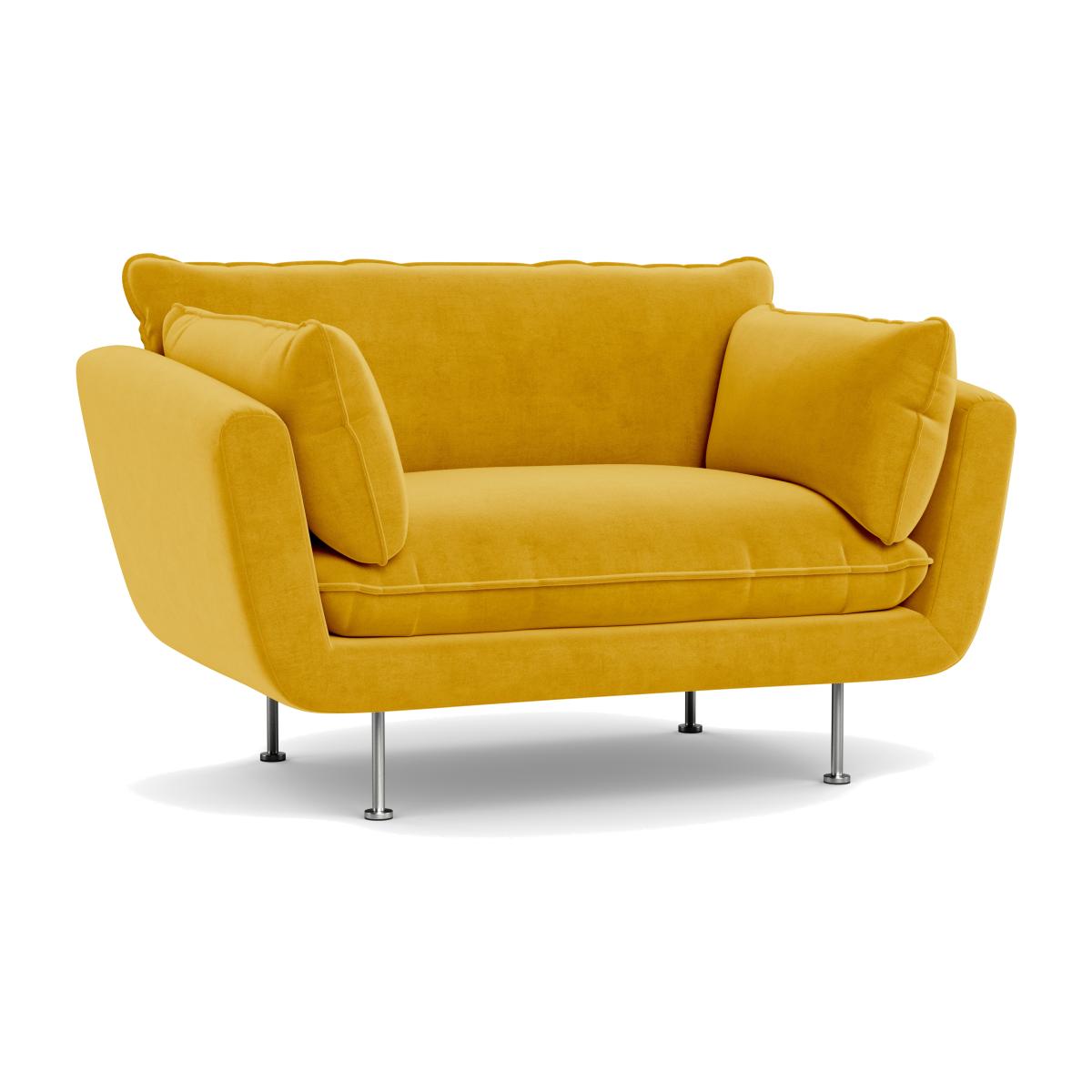 I love this loveseat for its vibrant Canary Yellow hue and sleek ‘Smart Luxe’ velvet, which adds a touch of luxury without feeling overly formal. It works brilliantly in contemporary or eclectic interiors, where its bold colour can act as a focal point, or in more neutral spaces to inject personality. Practical styling tips include pairing it with patterned cushions in complementary or contrasting shades to create visual interest, and balancing its energetic colour with soft neutrals or earthy tones around it. The black feet lend a modern touch that makes it versatile enough to slot into various schemes, from minimalist to maximalist. Overall, it’s a statement piece that’s equally comfortable for everyday life and special occasions.