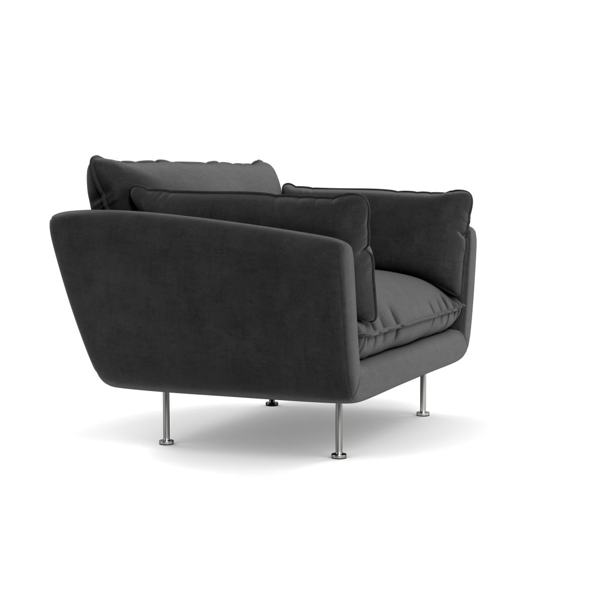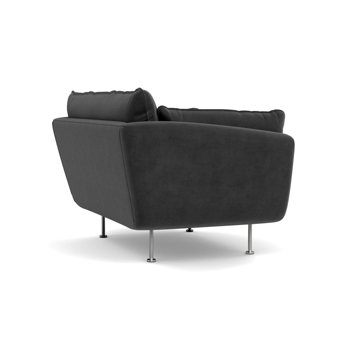 I love this loveseat for its combination of luxe velvet and contemporary nickel and brass feet, making it a versatile statement piece. It works particularly well in modern, minimalist interiors or those with mid-century touches, adding a touch of sophistication without feeling overly formal. Practical styling tips include pairing it with textured cushions or a cosy throw to soften the deep hue, and positioning it within a neutral palette to let the rich velvet stand out. Its sleek legs give it a light, airy feel that’s perfect for smaller spaces or for grounding a more eclectic scheme. Overall, it’s a stylish choice that balances comfort and elegance with ease.