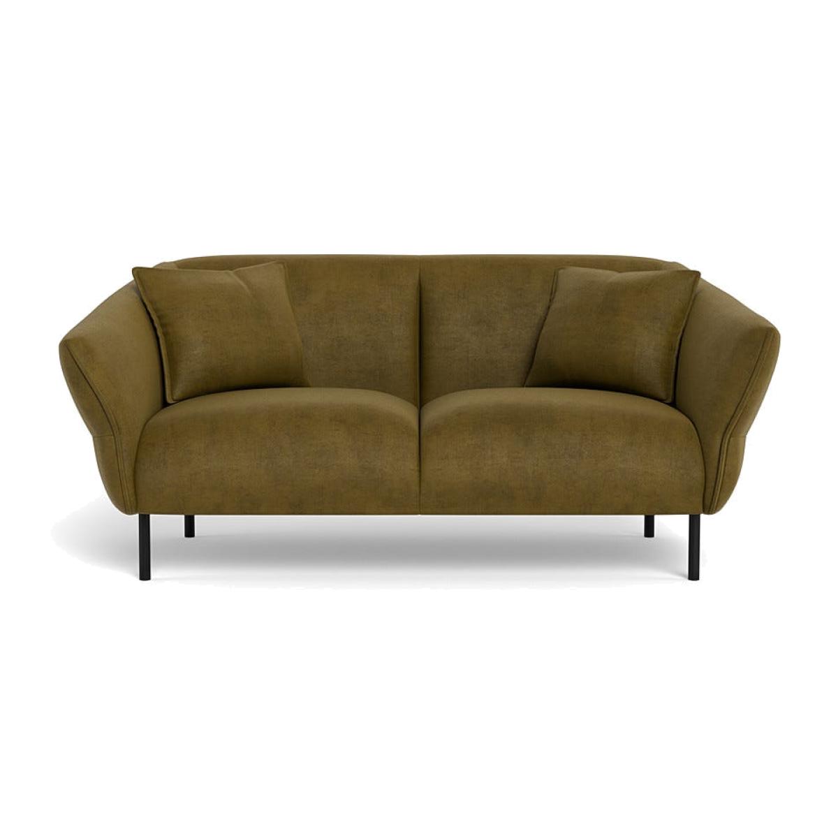 I’m a big fan of this Alto two-seater in peridot velvet - the slim black legs and gently curved arms give it a modern, mid-century vibe without feeling fussy. The rich olive-green tone works particularly well in neutral schemes (think warm beiges or soft greys) but can also hold its own against darker blues and deep terracotta when you want a more dramatic look. For styling, layer in textured cushions (linen or bouclé in off-white or charcoal) and a lightweight wool throw to balance the smooth velvet. Pair it with matte-black or brass-frame side tables and a slim-profile floor lamp to echo the sofa’s crisp lines. On the floor, a low-pile jute or sisal rug grounds the seating area without competing with the colour.