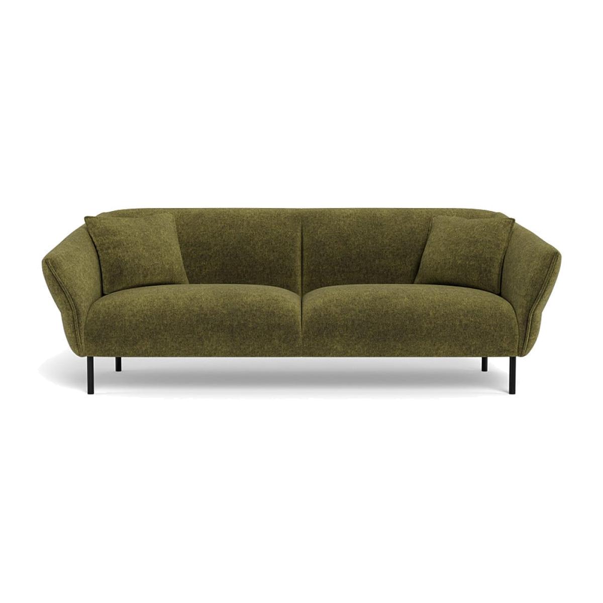 I’d call this the Alto sofa, and what I appreciate most is its boucle-velvet upholstery - it feels soft under the hand yet holds a neat shape - plus the slim black legs keep the design light. Its gentle curves and deep seat work well in contemporary, mid-century or Scandi schemes, especially against pale walls or alongside warm timber flooring. For styling, try anchoring it with a low coffee table and a couple of geometric cushions in contrasting tones (mustard or slate work nicely), then layer in a simple wool throw for texture. A sculptural floor lamp or a pair of framed black-and-white prints will complete a balanced, lived-in look.