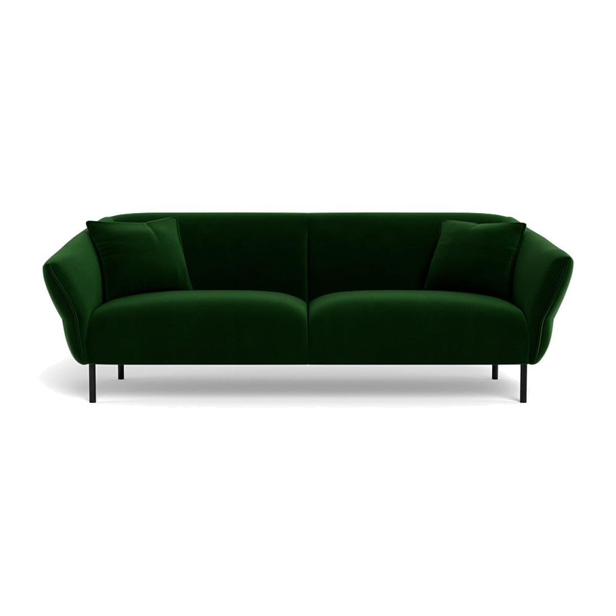 I’d call this simply the forest-green velvet sofa - it’s a practical statement piece that works equally well in contemporary and mid-century schemes. The clean lines and slim black legs keep it feeling light, while the deep green velvet adds warmth without overpowering the room. For styling, pair it with brass-framed coffee tables or a walnut sideboard to emphasise the colour contrast, and layer in cushions in ochre or mid-grey linen for texture. A soft wool throw in a neutral tone will soften the silhouette and make the sofa feel even more inviting on chilly evenings.