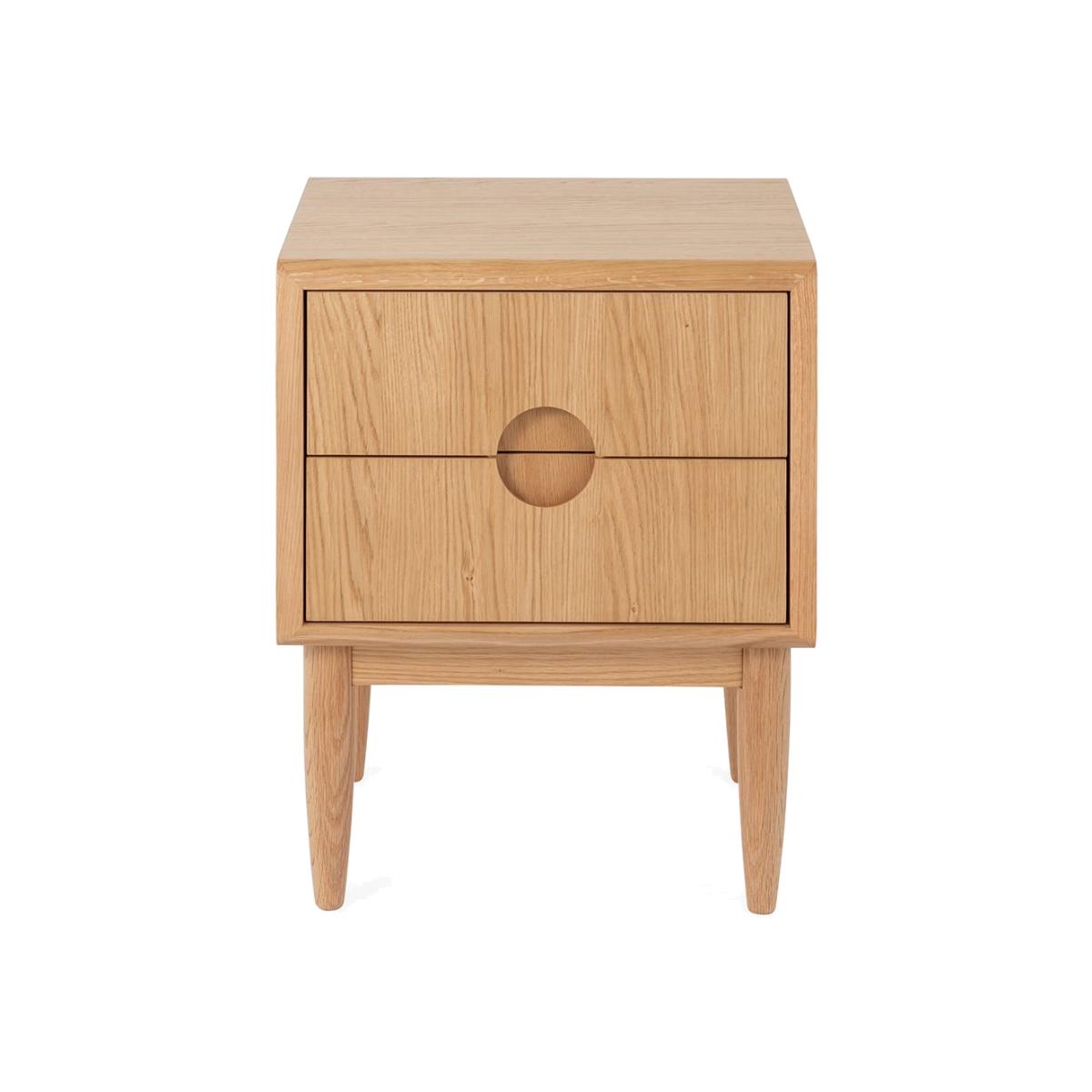 I really like the Amira bedside for its clean lines and solid oak finish - it feels both sturdy and light in a room. Its simplicity suits Scandi, mid-century and contemporary schemes, while the recessed circle pull adds a subtle design twist. To style it, pair with a slim-profile lamp, a small stack of books and a ceramic pot holding a plant or decorative object. The two drawers give you discreet storage for bedside essentials, keeping surfaces clutter-free and the overall look calm.