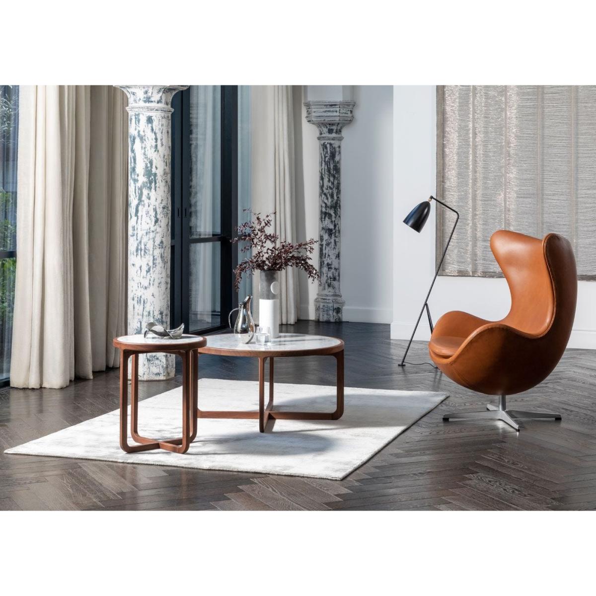 A new addition to the exclusive Heal’s collection, the walnut Anais Side Table lends timeless style to living rooms and bedrooms. Its solid walnut frame boasts a uniquely curved shape. A solid marble table top rests on top of the base and features grey veins running though it for a completely unique finish.
