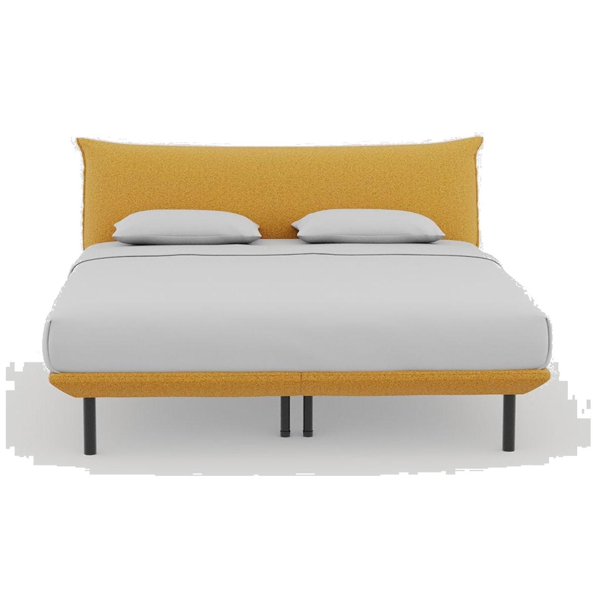 I’m a fan of the Aria bed in that warm turmeric boucle - its low-profile frame and slim black legs make it equally at home in a contemporary city flat or a pared-back Scandi bedroom. The curved headboard feels inviting without overwhelming a small space, and the bold colour works brilliantly against cool neutrals like dove grey or off-white. For styling, keep bedding simple in soft linen or cotton and introduce contrast with a charcoal throw or teal cushions. Add a slim wooden bedside table and a graphic black-frame lamp to tie in the legs, then finish with a natural-fibre rug underfoot for texture and comfort.