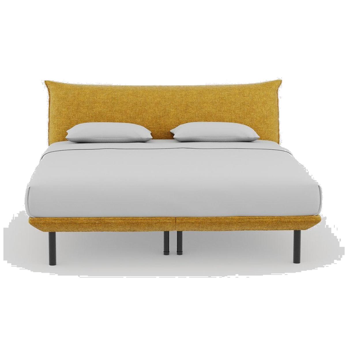 I’m a big fan of the Aria velvet bed in corn - the soft, ribbed upholstery and slim black legs give it a light, modern feel that still feels cosy. Its muted yellow tone works brilliantly against deep blues or charcoal greys for a moody look, or you can slot it into a Scandi-style scheme with pale woods and white walls. For styling, keep your bedding simple - crisp white linen or a light grey duvet will let the bed’s colour do the talking. Add a couple of textured cushions in ochre or soft teal and a chunky throw at the foot. Pair it with floating bedside shelves or slender oak tables to maintain that airy, lifted vibe and leave plenty of space underneath to make the room feel larger.