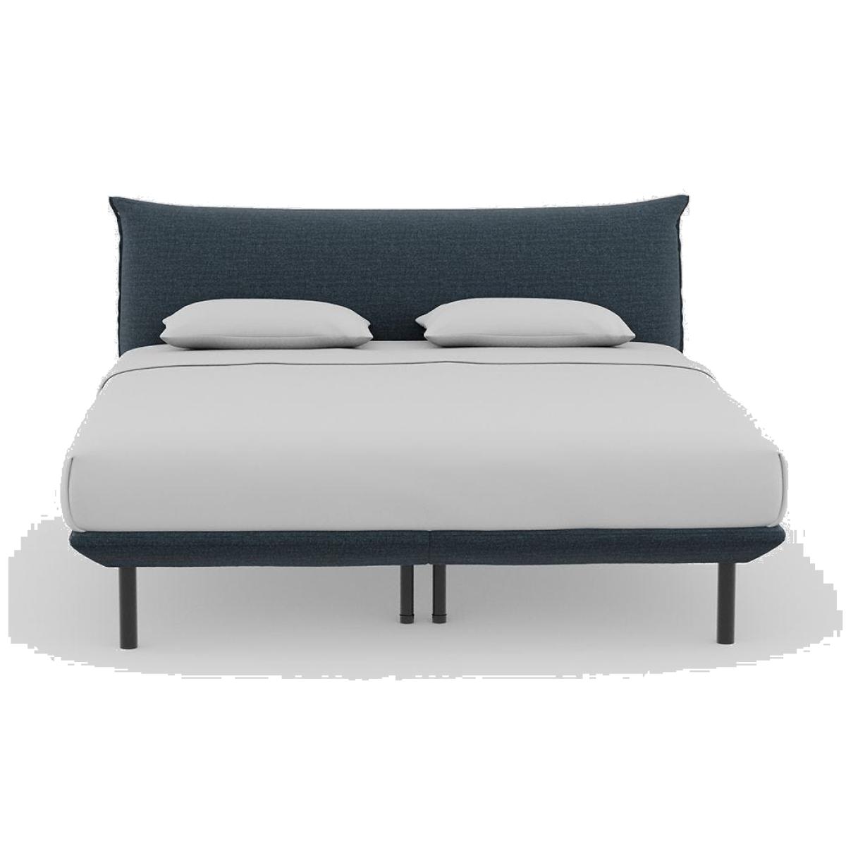 I’m a fan of the Aria super-king bed in that deep-sea cotton - the slim black feet and simple slatted base give it a light, contemporary feel without sacrificing support. It’s ideal in modern or Scandi-inspired bedrooms, where its clean lines and rich, muted tone can anchor white walls or pale wood floors. For styling, layer crisp white or soft grey linen with a chunky knit throw at the foot, and add a pair of slim, brass-toned bedside lamps to pick up warmth against the cool upholstery. A low-pile rug in natural fibres will keep the look grounded, while floating bedside shelves maintain the bed’s elegant, airy silhouette.