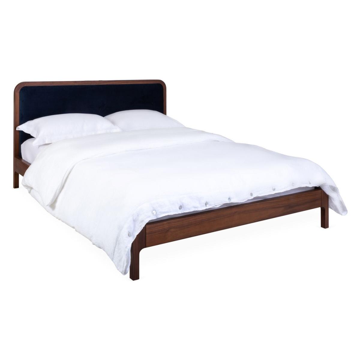 Created by Magnus Pettersen for Heal’s, the Artie King Size Bed takes inspiration from mid-century design with modern flourishes. The elegant bed is crafted using solid and veneered walnut and completed with sumptuous velvet upholstery. The curved velvet headboard has a luxurious texture, and the deep navy shade compliments the darker hue of the wood. The addition of sprung slats makes for an even comfier sleep.