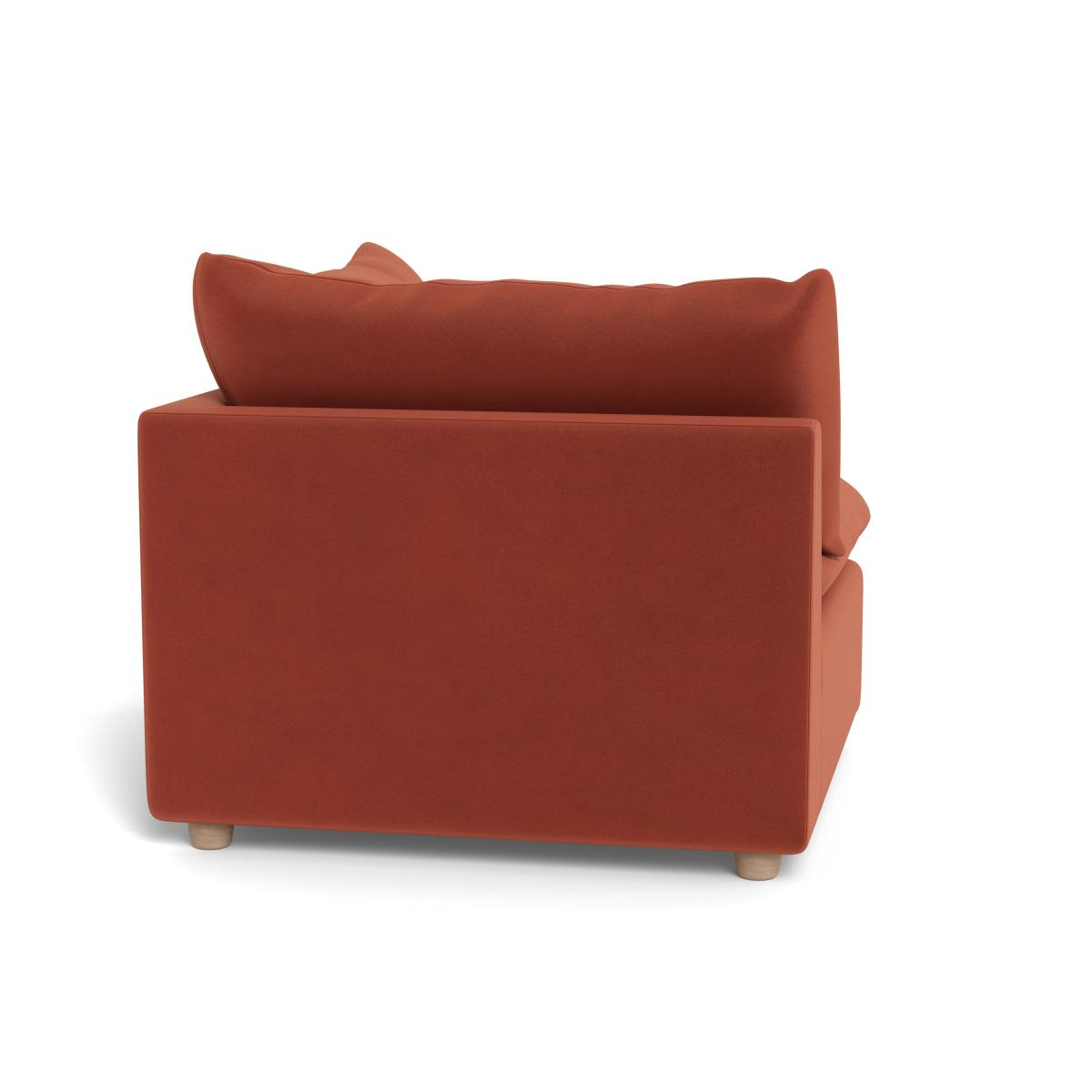 I really like this corner unit because it offers a compact yet surprisingly cosy seating option, making it perfect for smaller or open-plan living spaces. The luxe velvet in Tawny adds a touch of warmth and sophistication, especially when paired with neutral or earthy tones in the rest of the room. It works well in contemporary interiors but can also soften a more minimal or Scandi-inspired scheme. Styling tips include adding textured cushions or a throw in contrasting or complementary colours to enhance the tactile quality of the velvet. Practical advice would be to keep it clear of heavy items, as velvet can sometimes trap dust, and using a gentle vacuum or specialised fabric cleaner will help maintain its plush look over time.