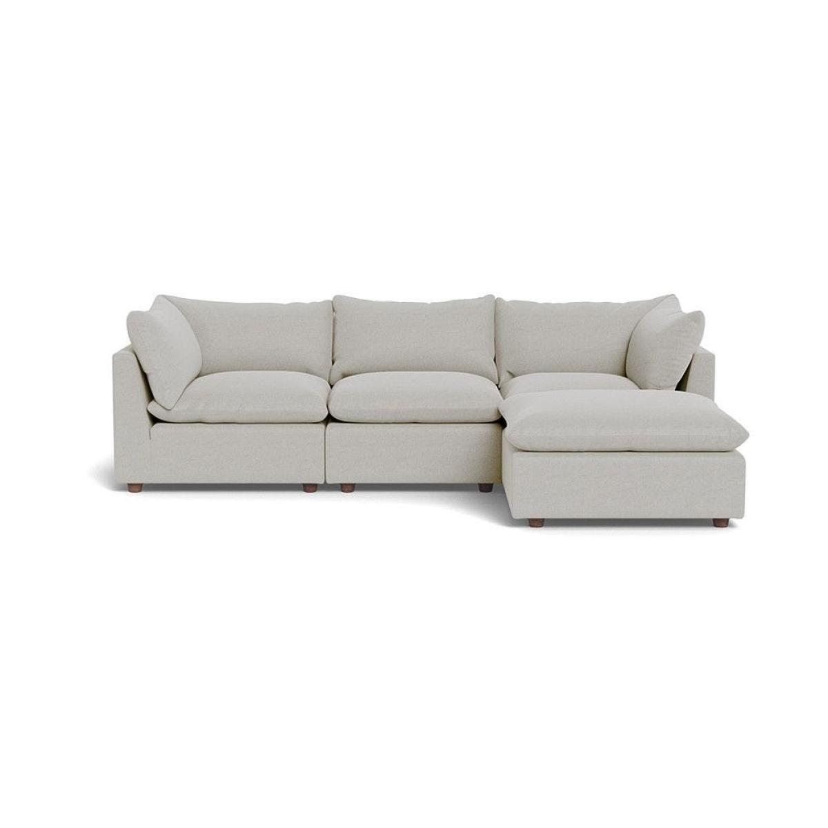 With each element designed to create cloud-like comfort, the Astrid sofa frame includes an extra layer of foam for additional padding, whilst the super-soft seat cushions are filled with duck down and feathers to provide exceptional comfort. Expertly upholstered in the UK, Astrid’s flexible design can be adapted to suit any space, with three modules to create the perfect configuration, available in a range of exclusive fabrics. Comprising an armless single unit, corner units and an ottoman, simply choose the configuration according to your space.