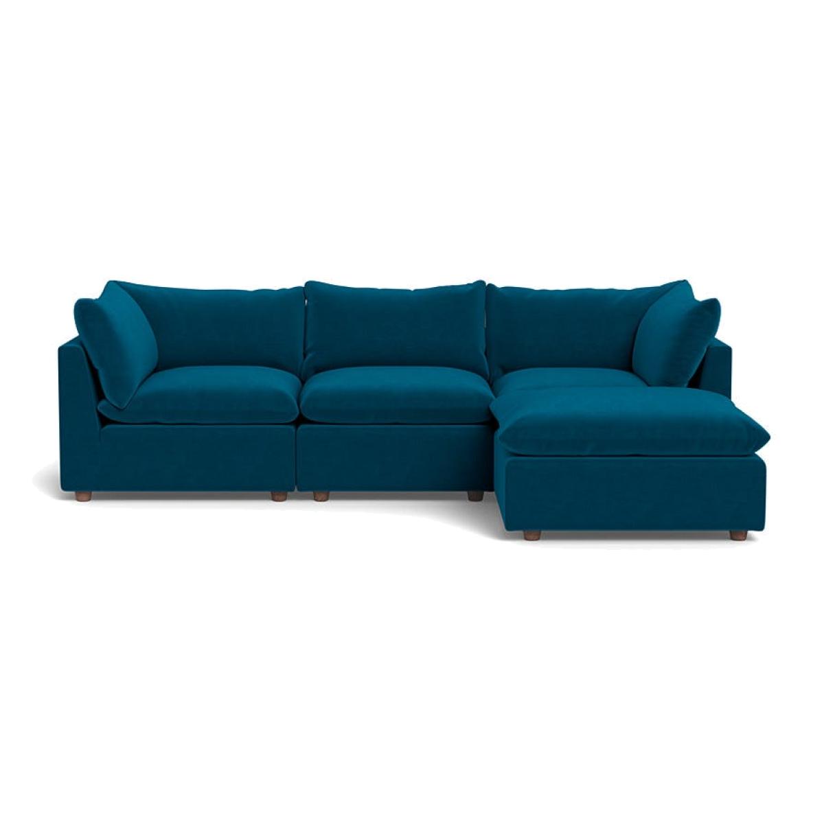 Heal's Astrid Right Hand Facing Corner Sofa Velvet Teal Walnut Stained Beech Feet