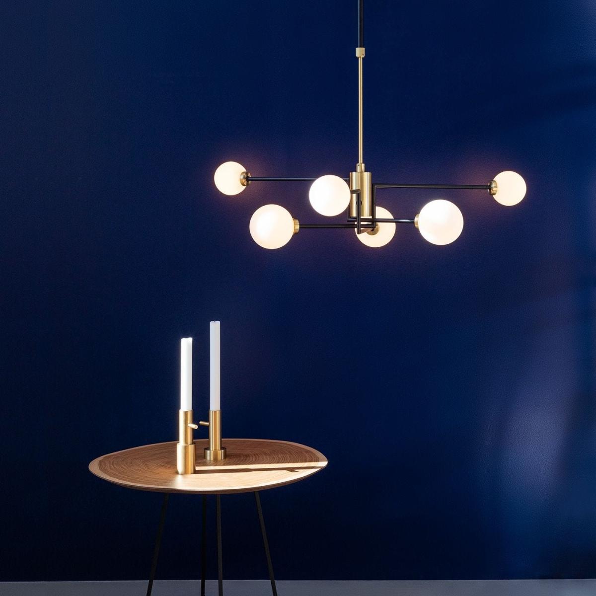 I love this modern take on a chandelier; it balances boldness with versatility thanks to its sleek black finish and geometric shape. It works particularly well in contemporary interiors or even in eclectic spaces where a statement piece is needed. For styling tips, consider hanging it in a dining room or above a kitchen island for maximum impact, ensuring the height is adjusted to suit the space and allow ample headroom. Pair it with minimalist furniture and clean lines to keep the look cohesive, or add warmer tones with textured soft furnishings to soften its edgy vibe. Its multi-arm design creates a dynamic focal point, making it perfect for rooms with high ceilings or open-plan areas.