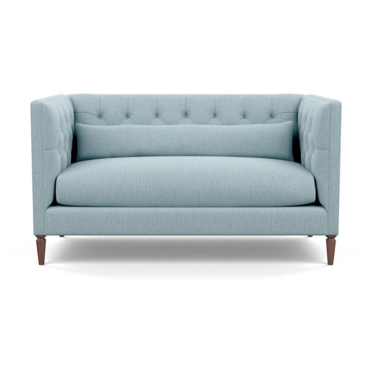 I love this sofa for its sophisticated yet contemporary aesthetic-its pale grey texture paired with walnut legs makes it versatile enough to work in both classic and modern interiors. It’s an excellent choice for those looking to create a calm, neutral backdrop that can be jazzed up with colourful accessories or kept minimal for a sleek look. Practical styling tips include layering with textured cushions in rich hues or metallic accents for added interest. Its clean lines and plush, tufted backrest make it perfect for a cosy family room or sophisticated lounge, and the colour palette lends itself well to both bold and muted interior schemes.