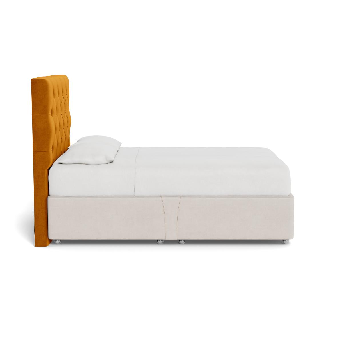 Handmade in Lancashire exclusively for Heal’s, the deep button cushion detail of the Balmoral headboard is inspired by traditional styles. Designed in house to pair with the Heal’s Divan range, this elegant headboard is made from FSC certified timber and filled with plump foam for extra comfort when reading in bed. Available in a choice of eight contemporary fabrics, each Balmoral headboard is upholstered by the same craftsperson who has over 43 years of upholstery experience. You can also sleep soundly in the knowledge that all of our divans and headboards come with a 10 year guarantee.