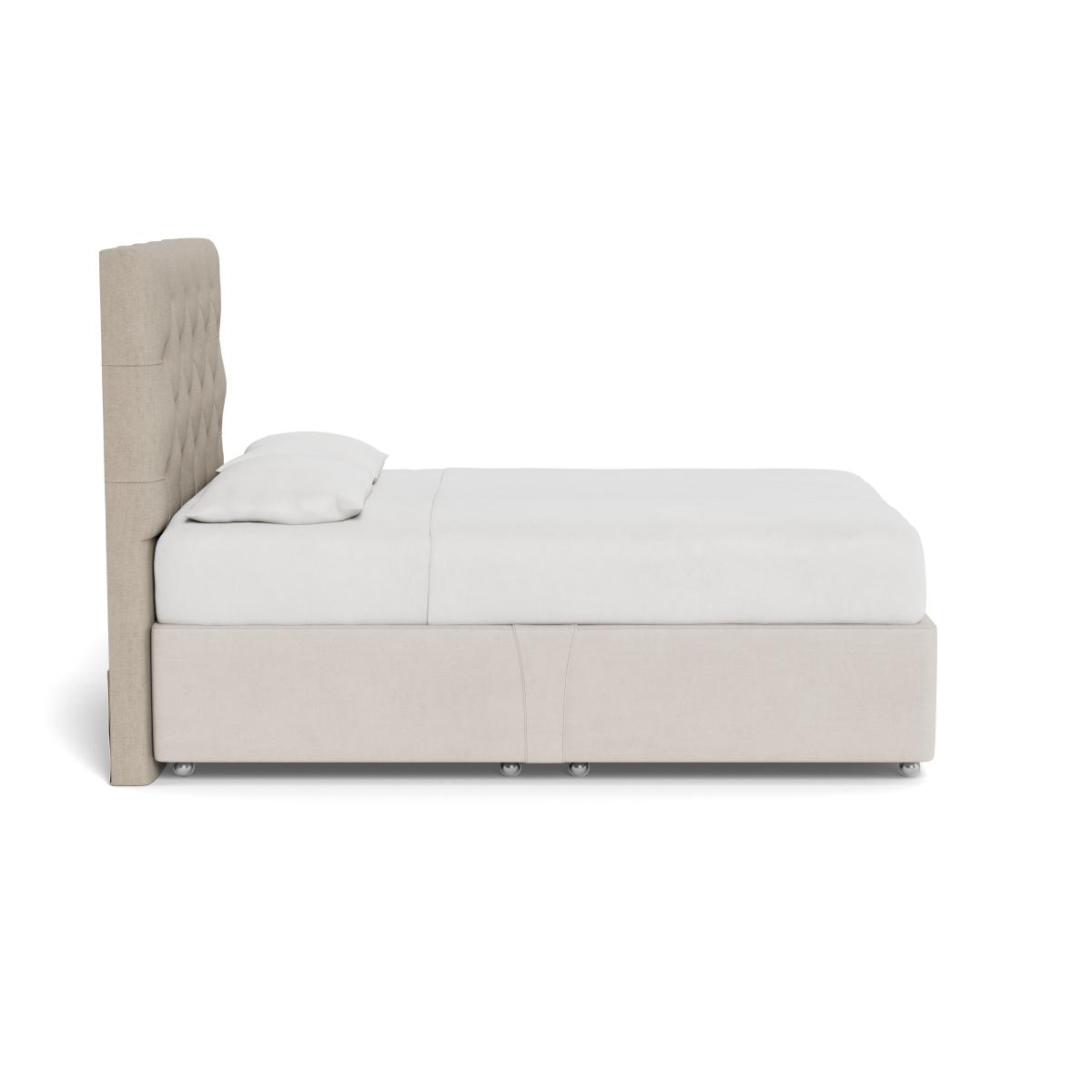 Handmade in Lancashire exclusively for Heal’s, the deep button cushion detail of the Balmoral headboard is inspired by traditional styles. Designed in house to pair with the Heal’s Divan range, this elegant headboard is made from FSC certified timber and filled with plump foam for extra comfort when reading in bed. Available in a choice of eight contemporary fabrics, each Balmoral headboard is upholstered by the same craftsperson who has over 43 years of upholstery experience. You can also sleep soundly in the knowledge that all of our divans and headboards come with a 10 year guarantee.