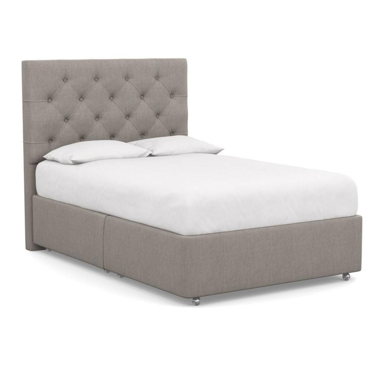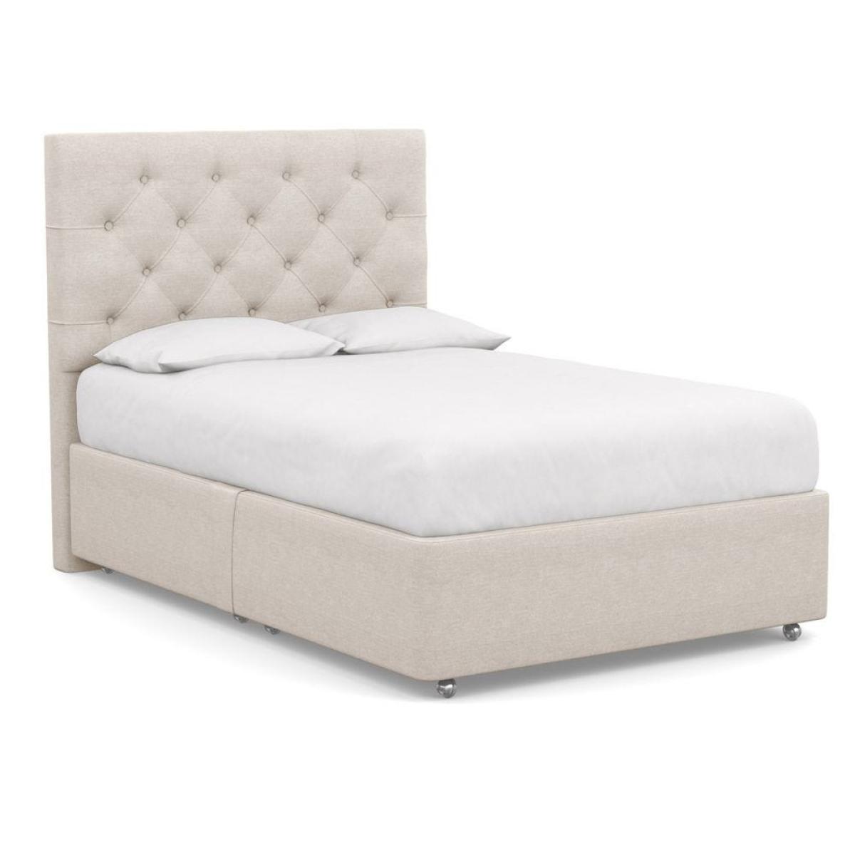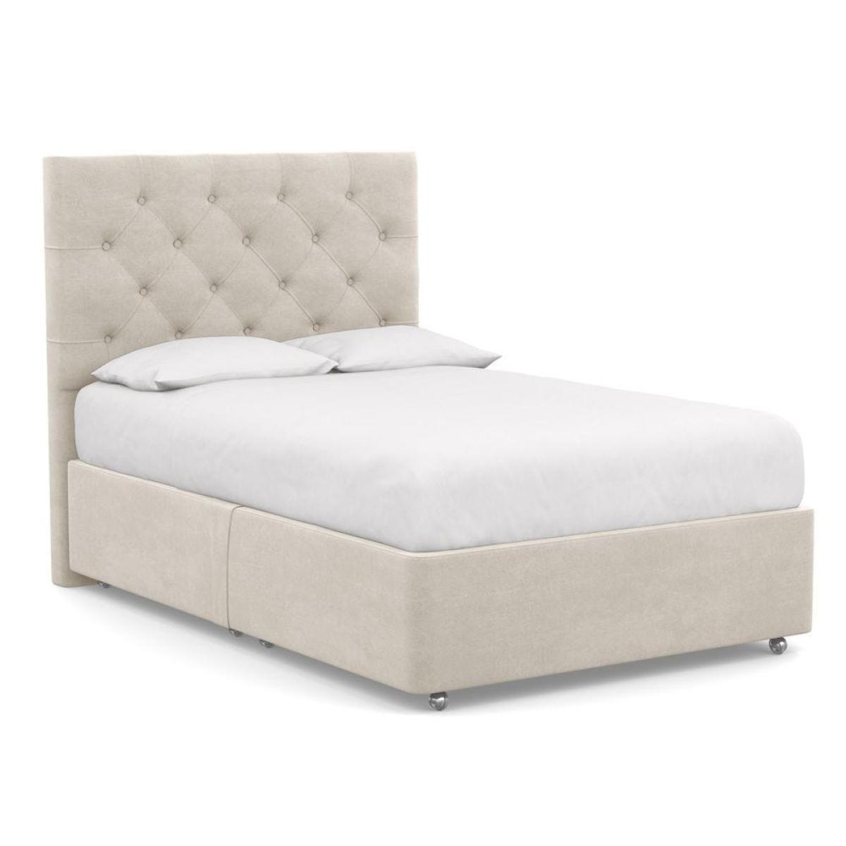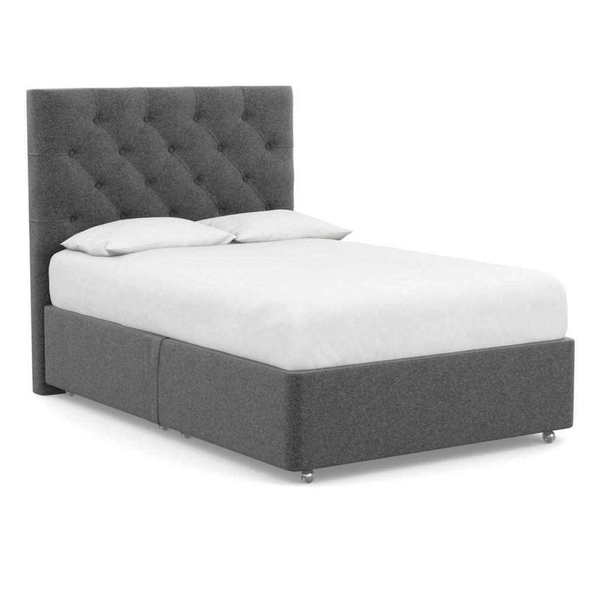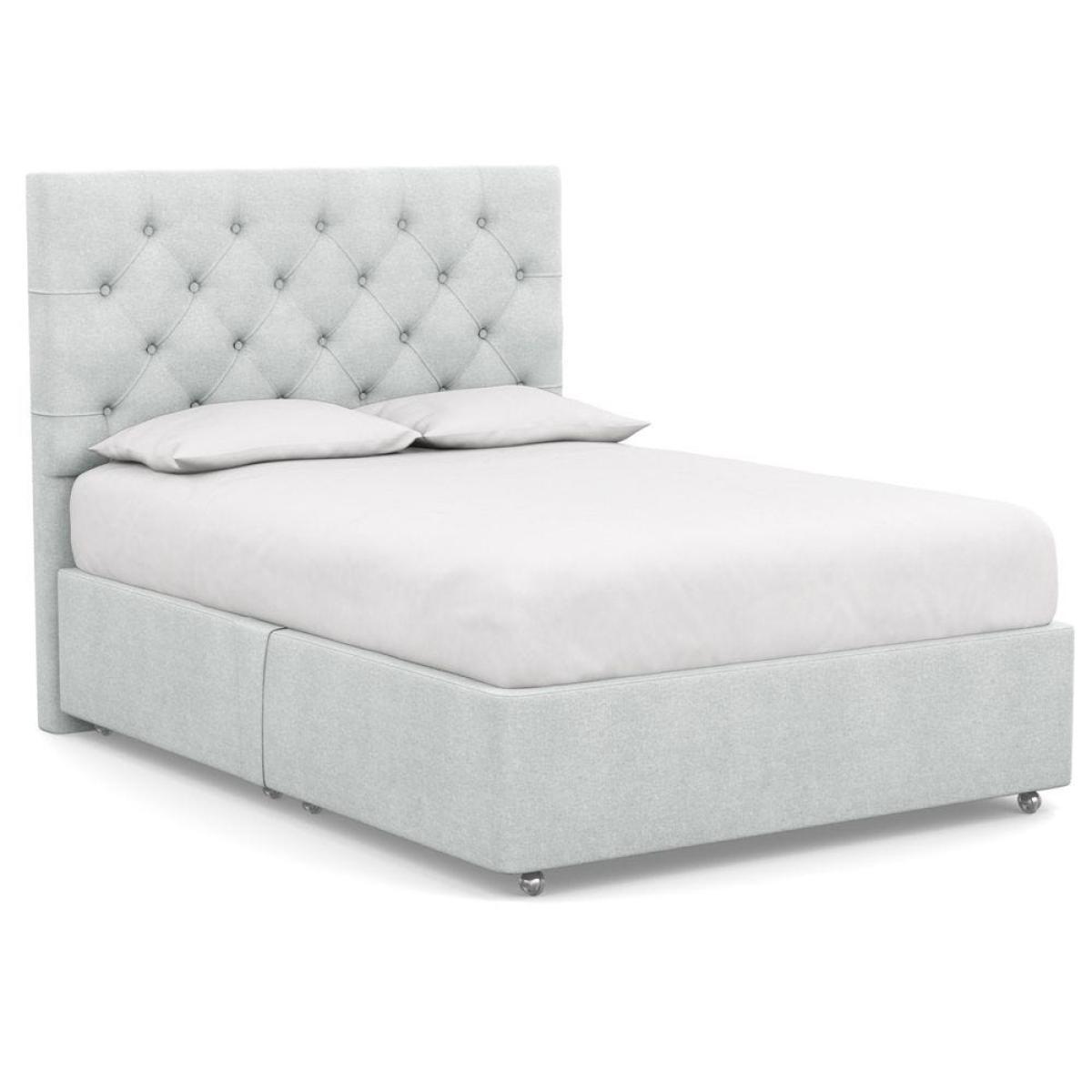 Handmade in Lancashire exclusively for Heal’s, the deep button cushion detail of the Balmoral headboard is inspired by traditional styles. Designed in house to pair with the Heal’s Divan range, this elegant headboard is made from FSC certified timber and filled with plump foam for extra comfort when reading in bed. Available in a choice of eight contemporary fabrics, each Balmoral headboard is upholstered by the same craftsperson who has over 43 years of upholstery experience. You can also sleep soundly in the knowledge that all of our divans and headboards come with a 10 year guarantee.
