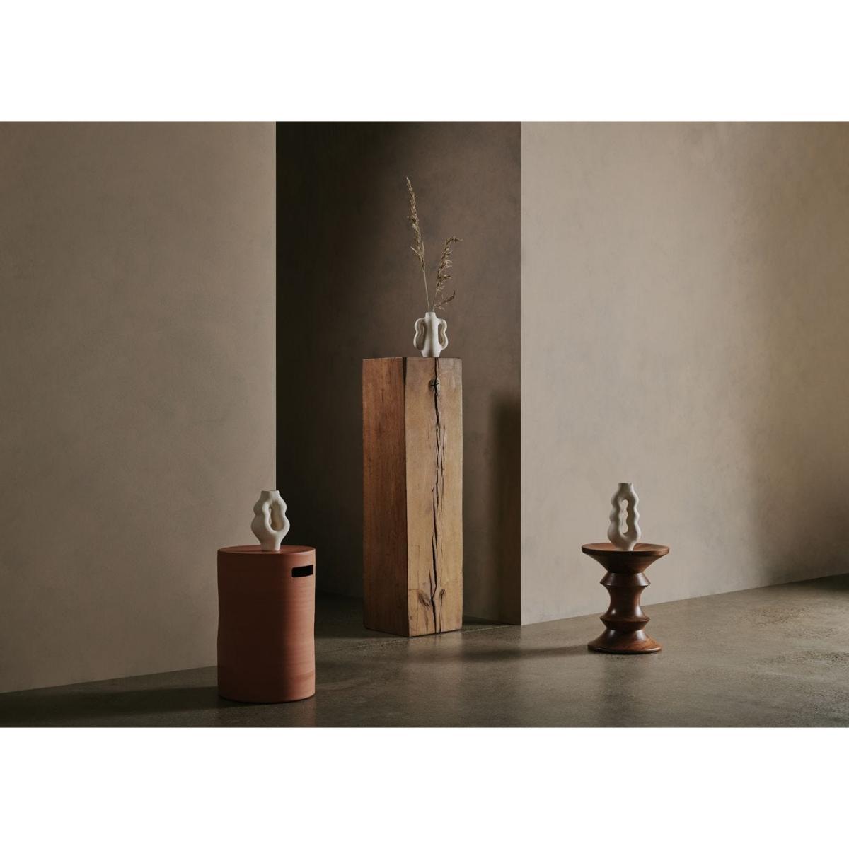 This Bethany clay vase carved by Annabel Cucuz is a herald of the rich ceramic history of her hometown. Growing up in Staffordshire, the heart of Britain’s pottery industry, it was a natural choice for her to use clay as the medium of her artistic sculptures. Entirely made by hand, the Bethany vase is inspired by organic shapes that makes it statement through its grand stature and wave shape. Brought to life in a magnolia colour reminiscent of chalk hills, this vase is an exquisite piece for any modern home