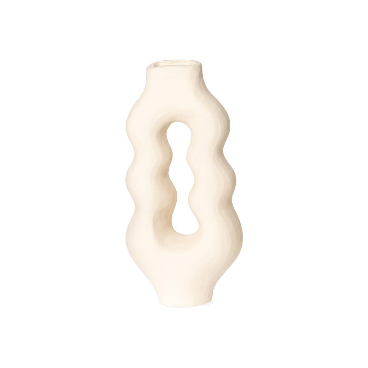 I love this vase for its sculptural shape and understated elegance, making it a versatile piece that can elevate both modern and more traditional interiors. It works particularly well in minimalist schemes where its unique form can be a focal point, or paired with greenery for a touch of colour and freshness. Practical styling tips include keeping arrangements simple-single stems or small bouquets allow the shape to shine-while placing it on a shelf, sideboard or mantle for maximum visual impact. Its understated colour and organic form also make it easy to mix and match with other accessories or ceramics in a variety of interior styles.