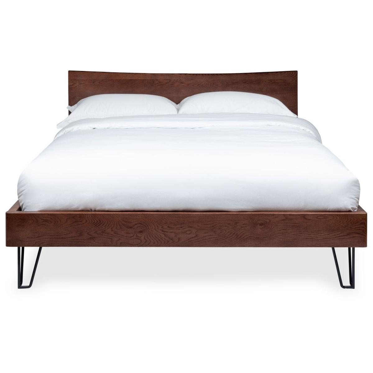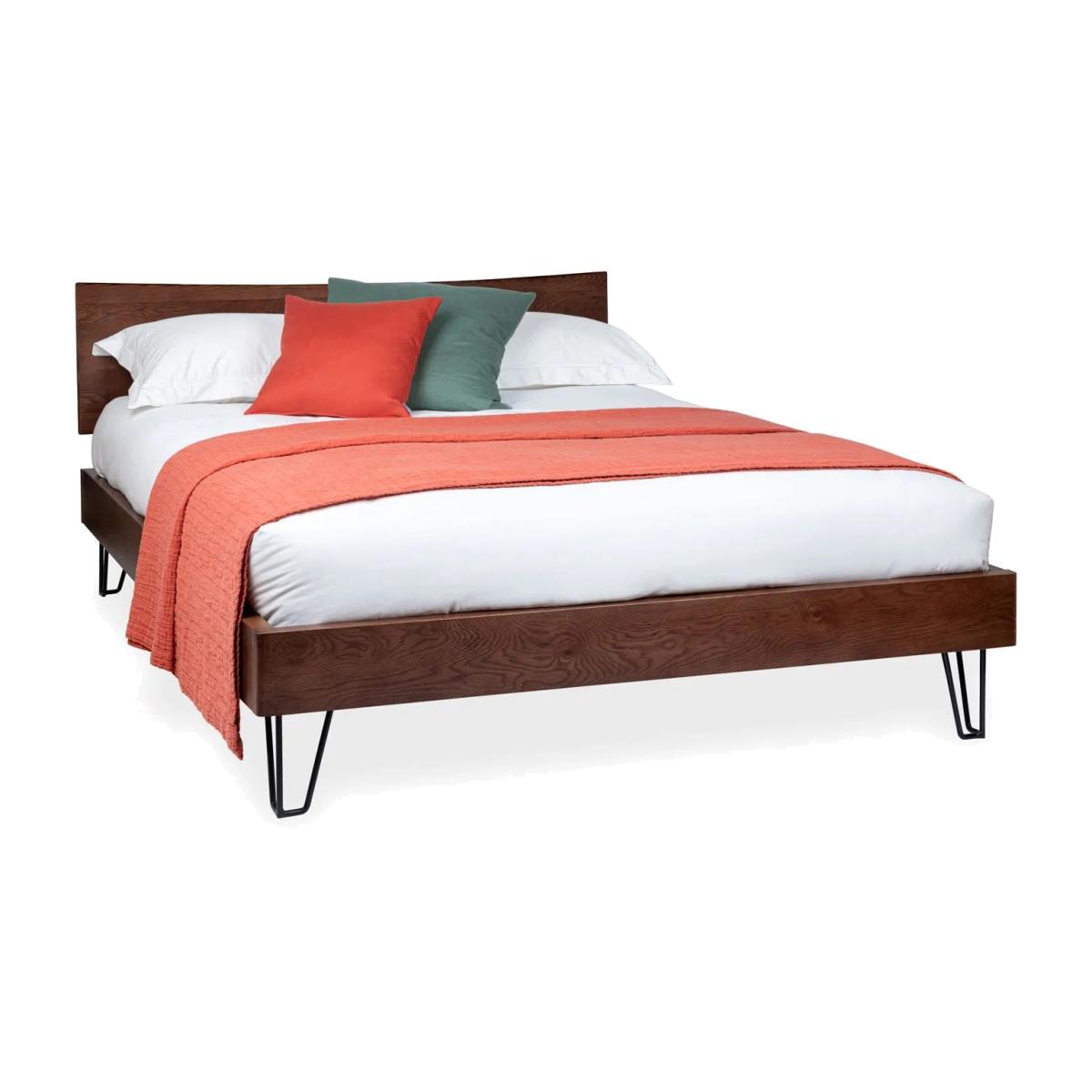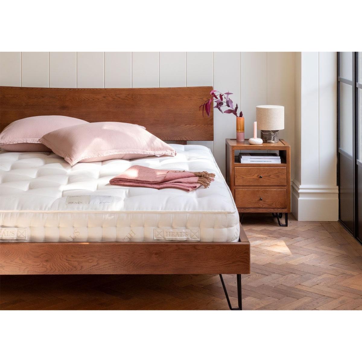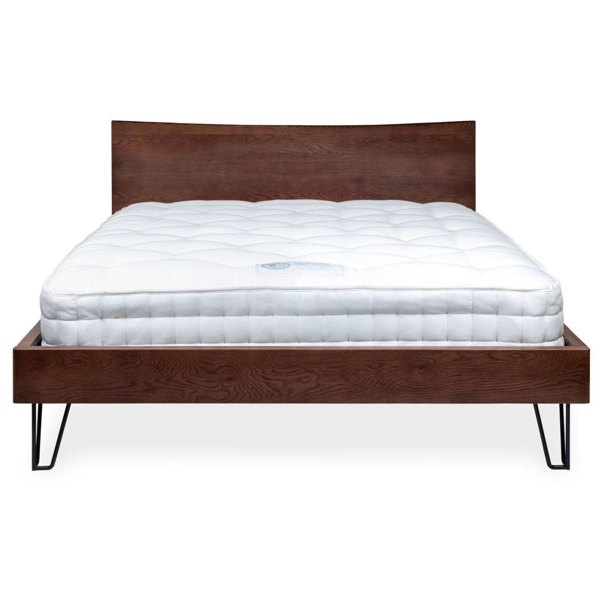 The Brunel Bed with dark stained oak headboard includes a king-size bed frame and headboard, both of which have been inspired by industrial style.