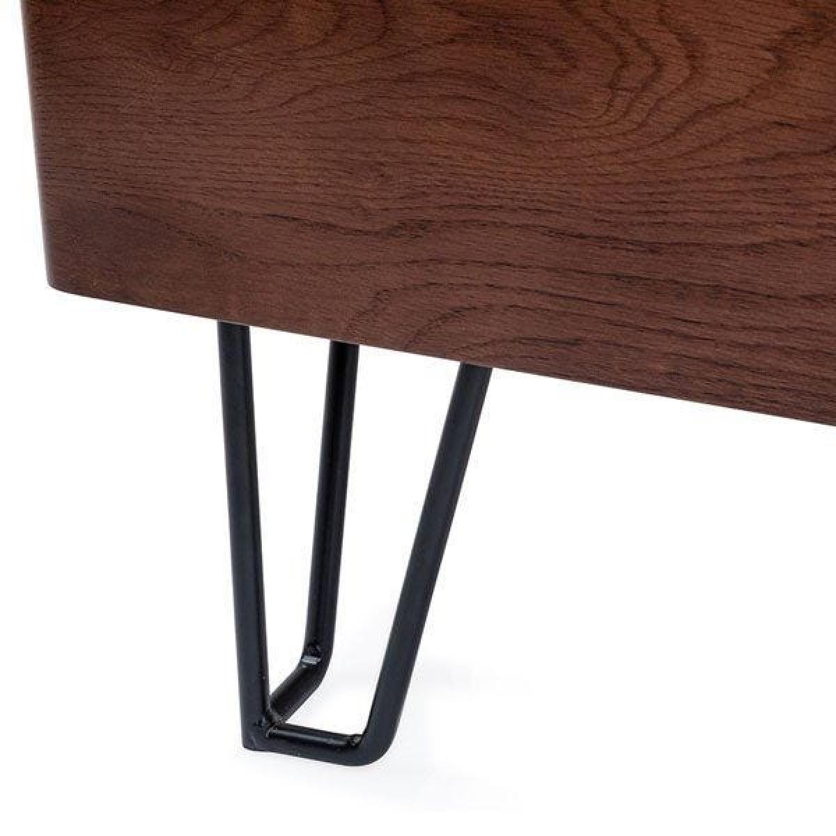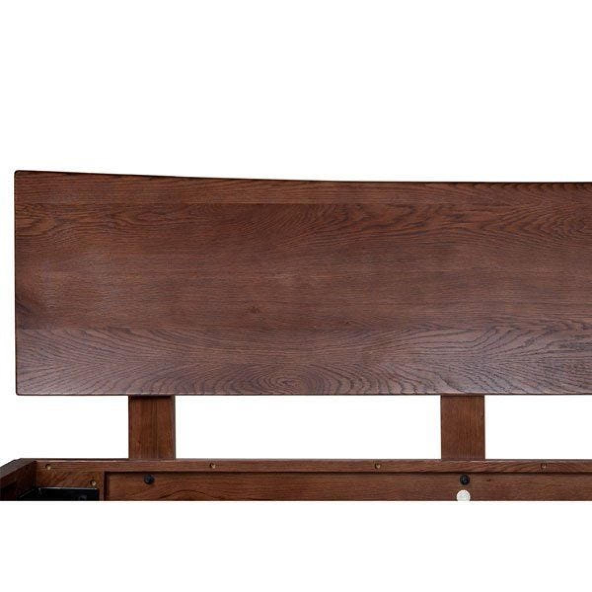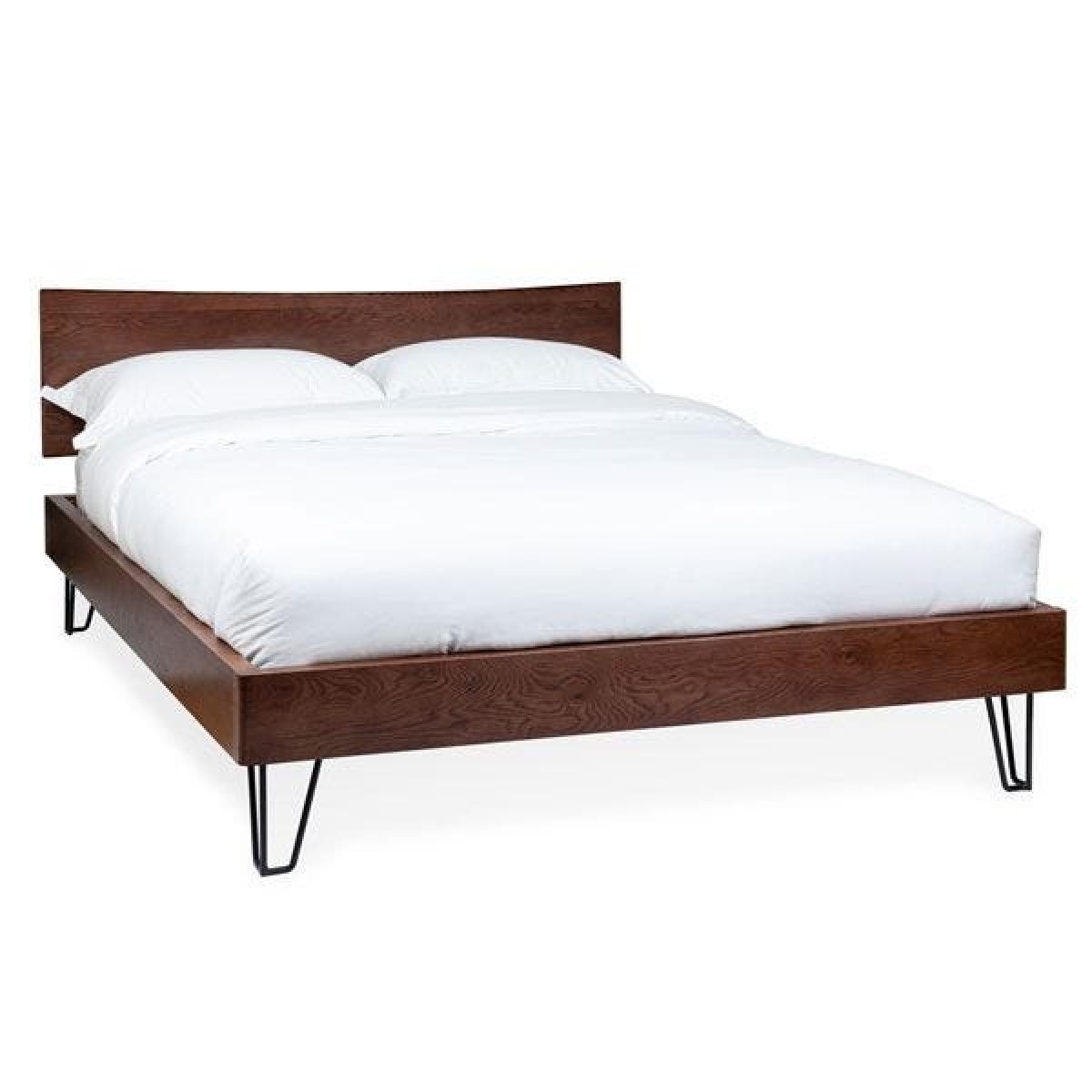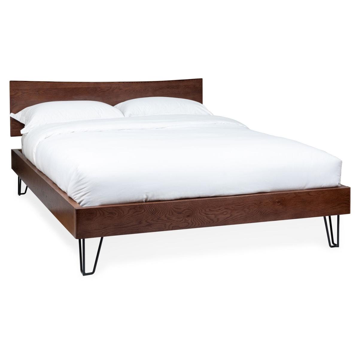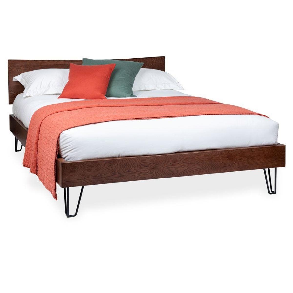 The Brunel Bed with dark stained oak headboard includes a king-size bed frame and headboard, both of which have been inspired by industrial style.