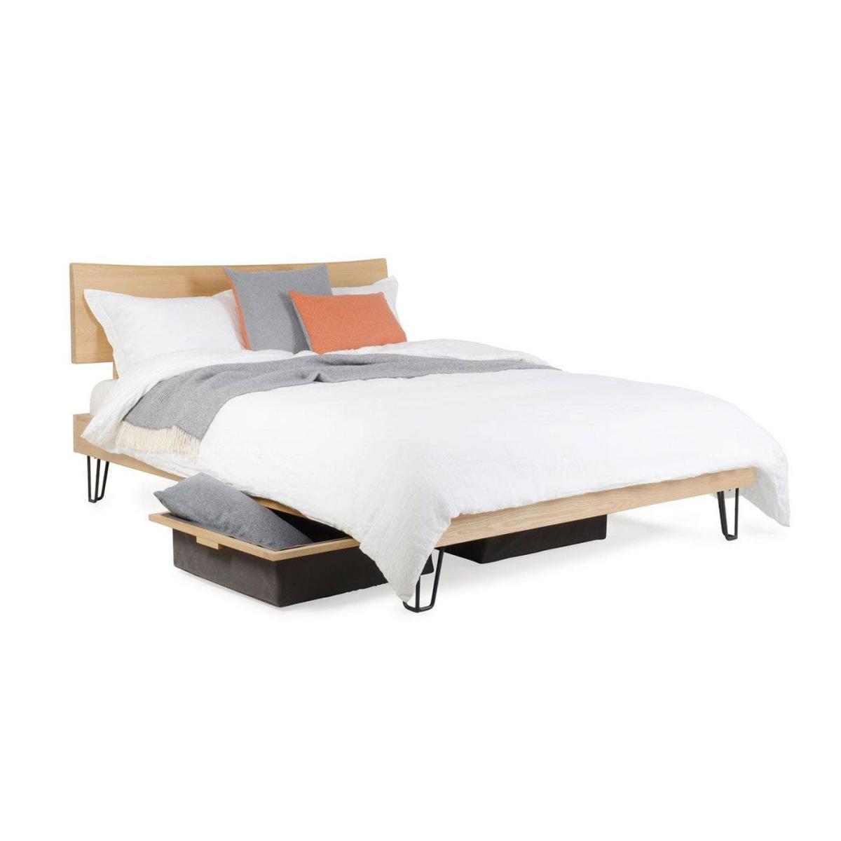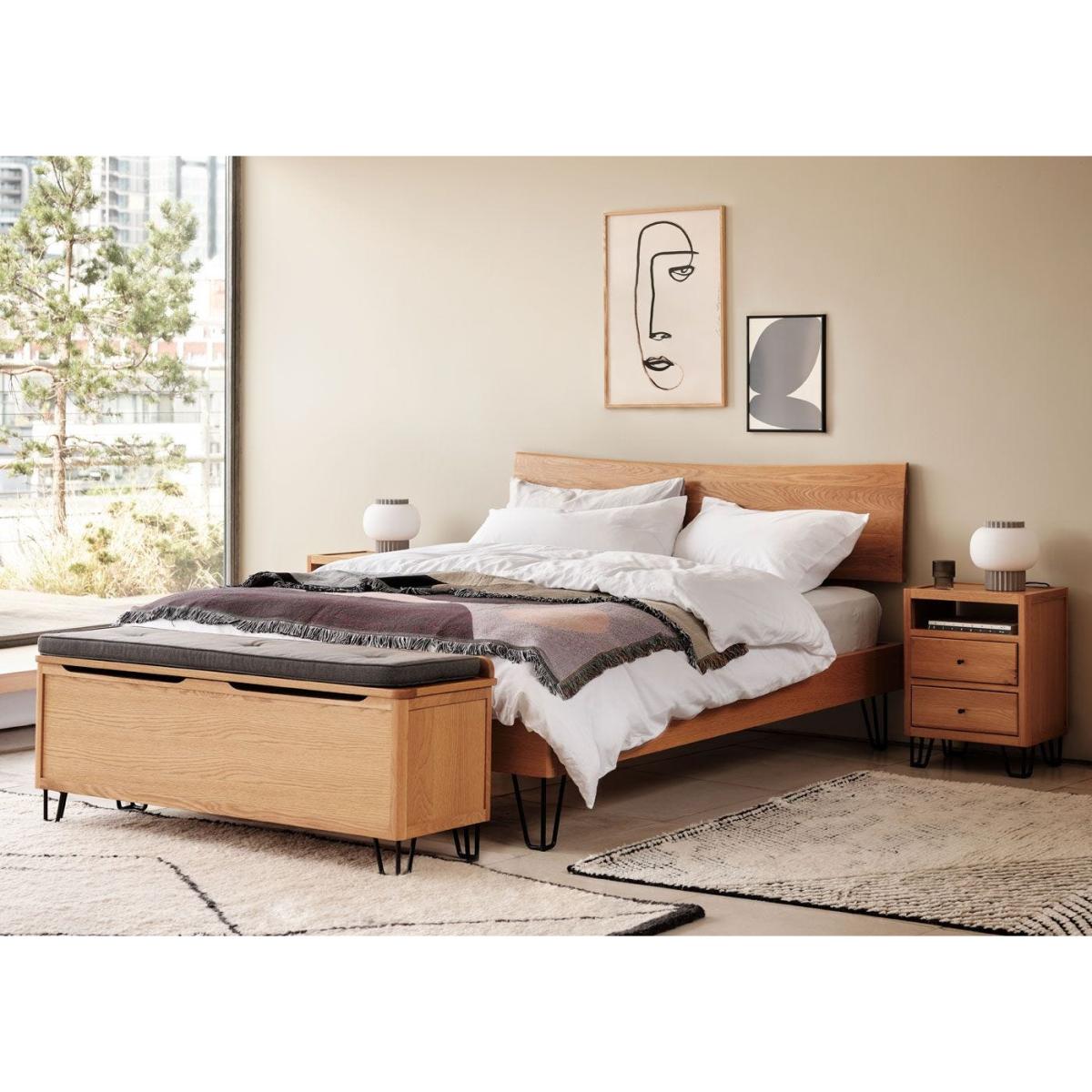 I love this bed frame for its clean, minimalist aesthetic and the warm tone of the oak headboard, which adds a touch of natural texture to any space. It works particularly well in Scandi-inspired, modern, or even rustic interiors, where its simple lines can be complemented by soft textiles or statement bedding. For styling tips, try pairing it with neutral tones and layered textiles for a cosy feel, or add colourful or patterned cushions to create visual interest. Its sleek metal legs keep it light and airy, making it easy to position in various room layouts, while providing a sturdy and timeless look that suits a range of personal styles.
