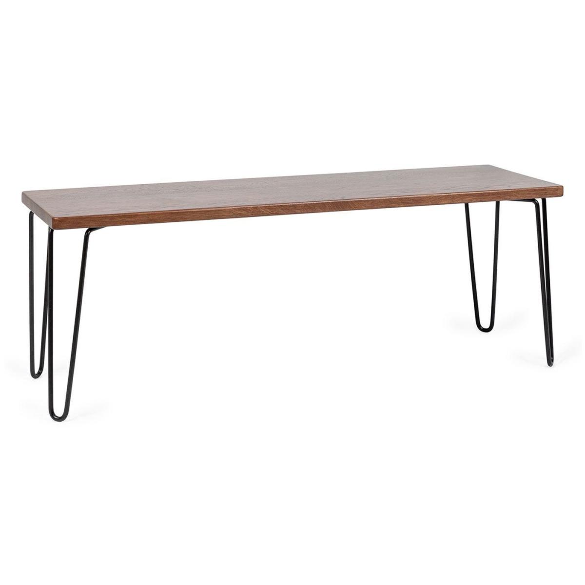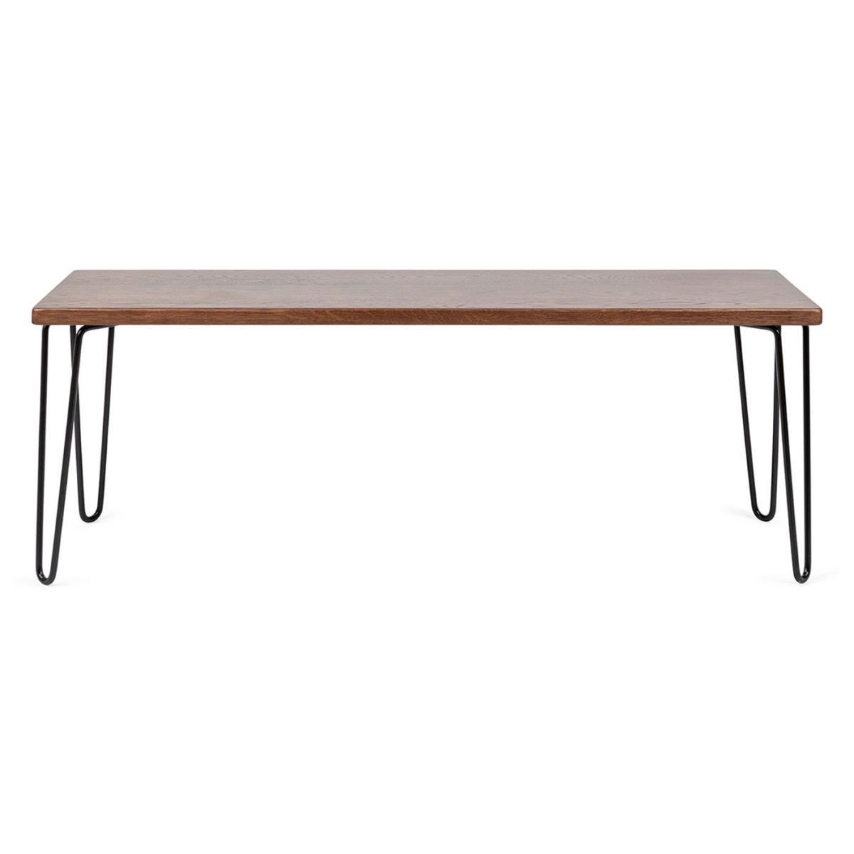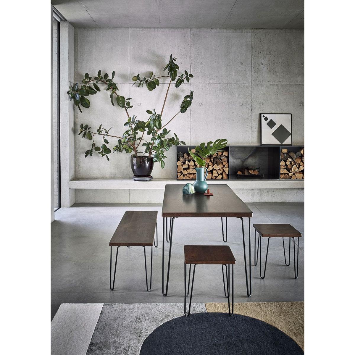 I love the Brunel bench for the way its dark-stained top and slender black hairpin legs strike a balance between warmth and minimalism. Its compact form lifts a room rather than weighing it down, making it an ideal choice for contemporary kitchens, industrial lofts or pared-back Scandi dining areas. For styling, slip a woven runner down the middle when using it as a dining table and add linen cushions to the benches for extra comfort. In a hallway or living room you can swap the benches out for low stools or use them as occasional coffee-table seating, then tuck them neatly back under when guests arrive.