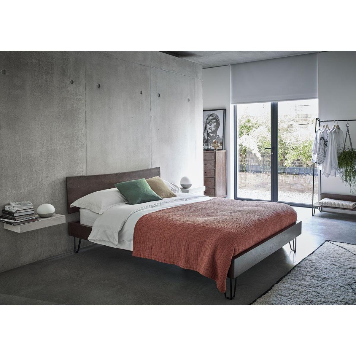 The Brunel Bed with dark stained oak headboard includes a king-size bed frame and headboard, both of which have been inspired by industrial style.
