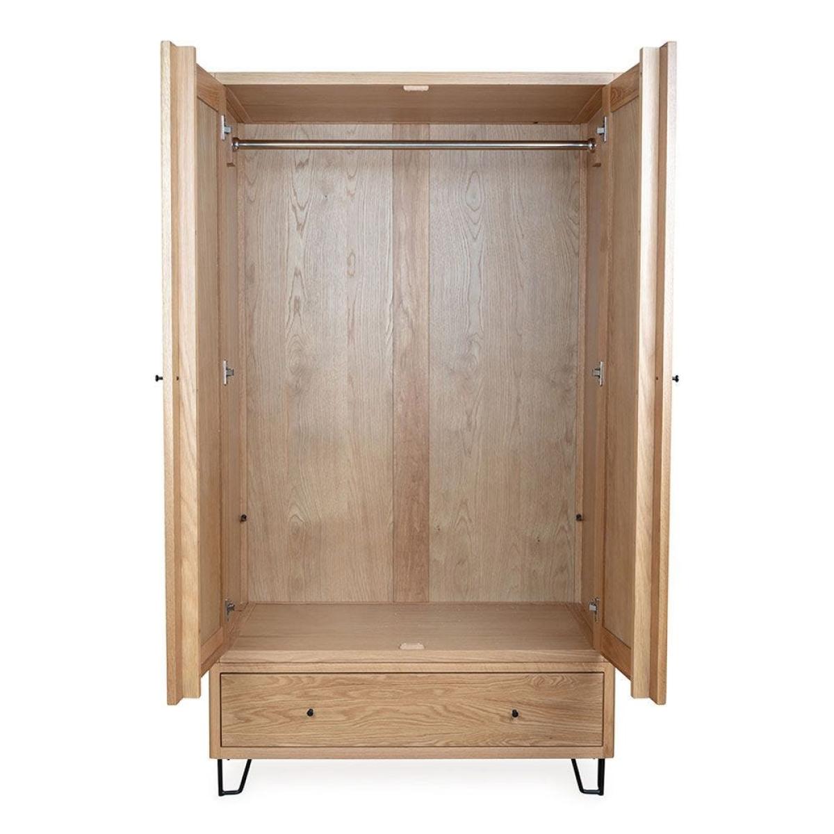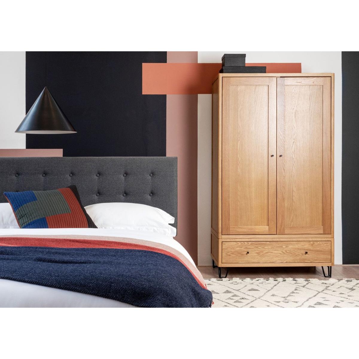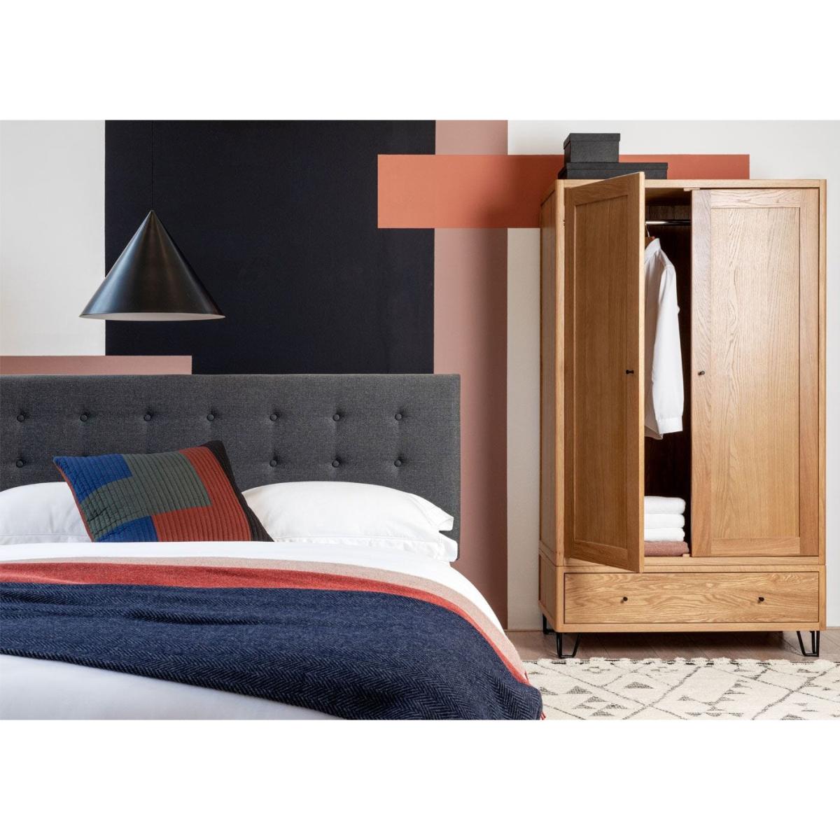 I’m a big fan of the Brunel wardrobe for its clean lines and warm oak finish - it brings a calm, natural feel without dominating the room. Its slim metal legs and recessed handles give it a subtle mid-century twist that sits equally well in Scandi, contemporary or even a pared-back industrial scheme. Styling-wise, keep the top clear or add just one low vase or plant to emphasise its sleek profile. Inside, use matching baskets or fabric organisers on the shelf and slim wooden hangers to maintain a uniform look. Pair with soft neutrals - think oatmeal linens and a boucle rug - and a single statement mirror nearby for balance and light.