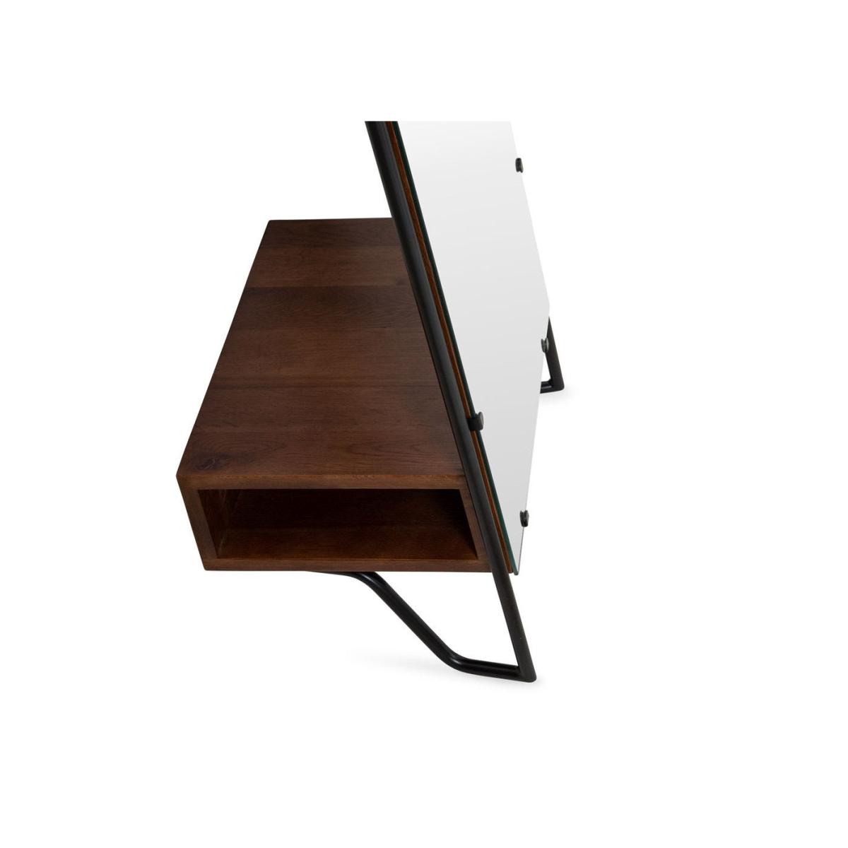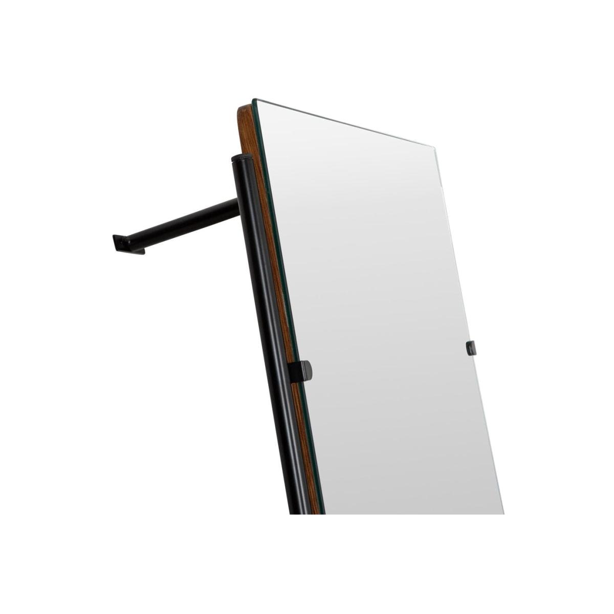 Rob Scarlett's popular Brunel range sets industrial style against mid-century Scandinavian design to create pieces tailored-made for the modern home. Drawing inspiration from original 1950s designs by the likes of Robin Day and Clive Latimer, this expansive mirror is supported by sleek tubular metal legs and a fresh lean-to design. The tall facade of the mirror face is backed by a solid structured frame crafted from American oak in a dark finish, and features a small shelf and cutaway storage space ideal for shoes or accessories.