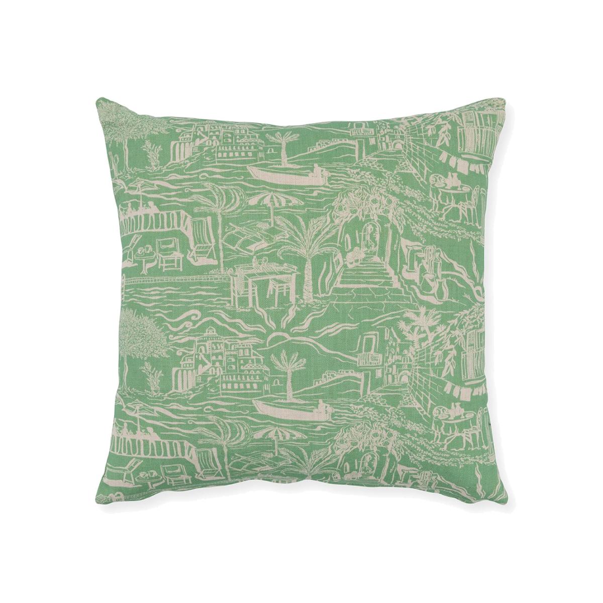 I love this cushion for its fresh, summery vibe and versatile design. The green and neutral tones make it a great addition to both coastal-inspired interiors and more subdued schemes, adding a touch of colour without overwhelming. It works well layered on a neutral sofa or chair to introduce pattern and texture, and its size makes it perfect for sitting or as a decorative accent. Practical styling tips include pairing it with natural materials like linen or wicker to enhance the Mediterranean feel, or combining it with other cushions in complementary shades for a curated, relaxed look. Its pattern is subtle enough to work across various interior styles, from casual to more polished spaces, making it a reliable choice for adding a lively yet calming touch.
