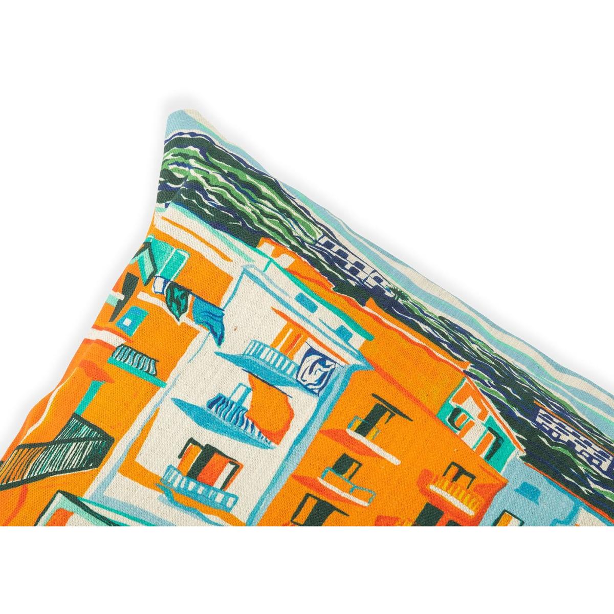 I love this cushion for its vibrant, illustrative design that offers a pop of colour and a touch of Mediterranean charm. The postcard-inspired print works especially well in coastal or bohemian interiors, adding an instant sense of travel and relaxation. It’s versatile enough to brighten up a neutral sofa or add interest to a bed in a relaxed, casual bedroom. For styling tips, team it with linen throws or other textured textiles to elevate its casual appeal, and consider pairing it with coordinating accessories in complementary colours for a cohesive look. Its size makes it perfect for adding comfort and visual interest without overwhelming your space.