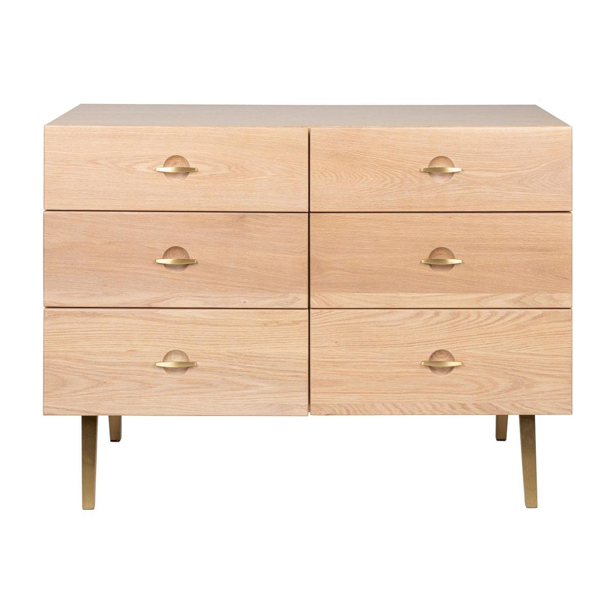 Designed by Rob Scarlett exclusively for Heal’s, the tall Crawford Chest of Drawers boasts six practical drawers crafted using solid blonde oak. Powder-coated steel legs and hand-cast solid brass handles complete the chest and lend it an understated feminine flourish. Pair it with other designs in the Crawford collection for a beautifully refined bedroom aesthetic.
