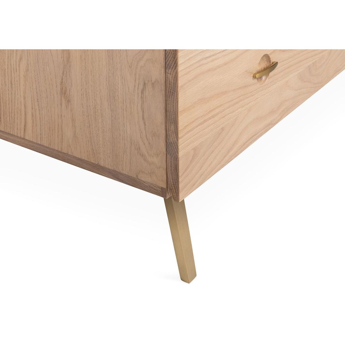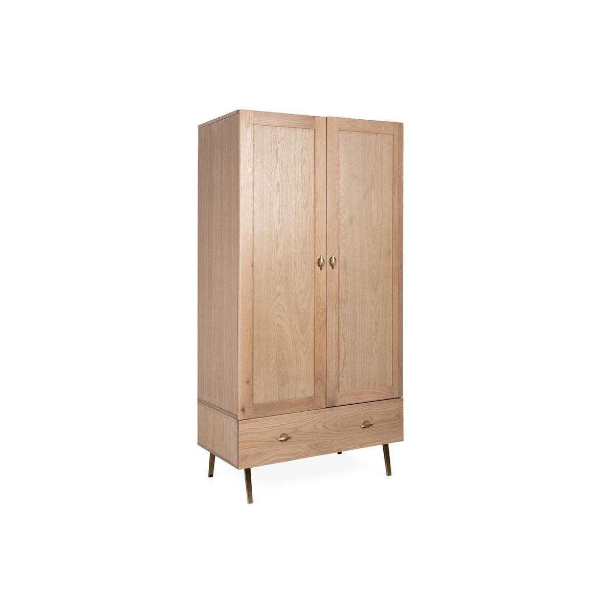 Designed by Rob Scarlett exclusively for Heal’s, the Crawford Wardrobe is crafted using solid blonde oak wood. Powder-coated steel legs and hand-cast solid brass handles complete the wardrobe and lend it an understated feminine flourish. Pair it with other designs in the Crawford collection for a beautifully refined bedroom aesthetic.
